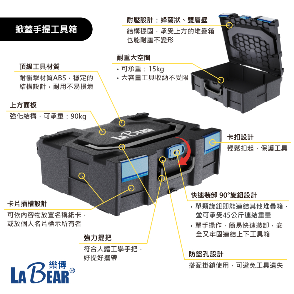 【LaBear】工具箱 堆疊 收納盒 系統式工具箱 組合箱 工具盒 手提工具箱 收納箱 工具桶 烏龜車 可移動托盤MEGACOIL-桶型無蓋手提工具箱|MEGACOIL-大款掀蓋手提工具箱|LaBear-上掀蓋手提工具箱-大款|LaBear-上掀蓋手提工具箱-中款|LaBear-移動托盤(烏龜車)ToolsLaBear 樂博工具