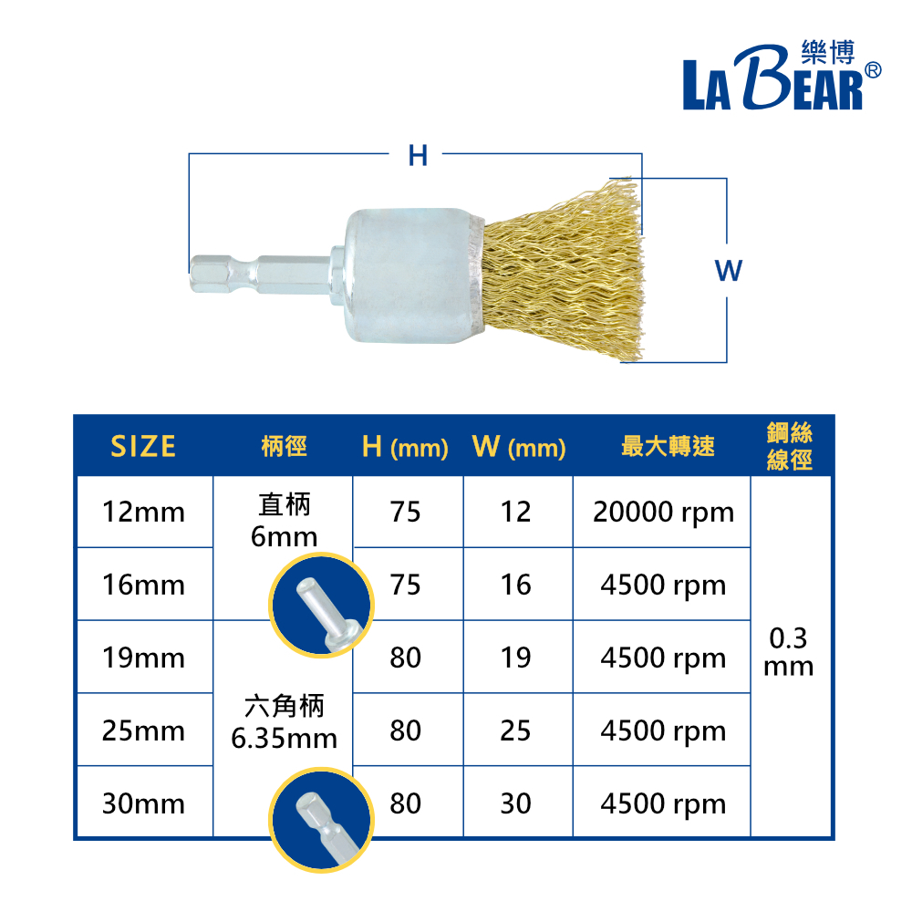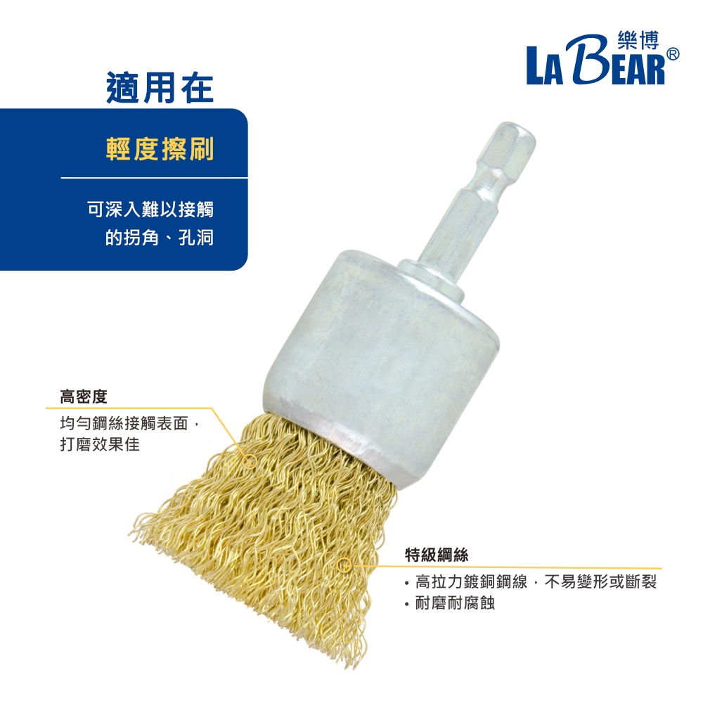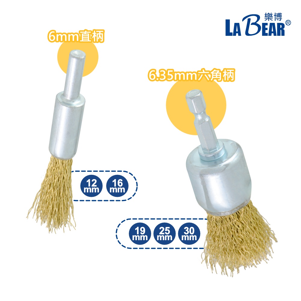 【LaBear】筆型鋼絲刷 帶柄 12-30mm 鋼絲輪 齊頭刷 角刷 直柄/六角柄 鍍銅 鋼絲刷 電磨刷 除鏽刷 除鏽筆型 19mm (六角柄)|筆型 25mm (六角柄)|筆型 30mm (六角柄)|筆型 12mm (直柄)|筆型 16mm (直柄)Cleaning BrushesLaBear 樂博工具