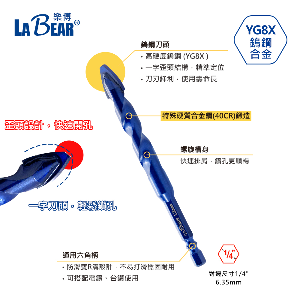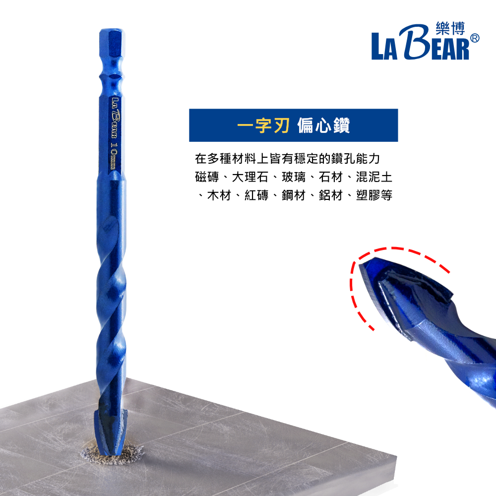 【LaBear】一字刃偏心鑽 鎢鋼刀頭 開孔鑽尾 瓷磚 玻璃 石材 陶瓷 水泥鑽 歪頭偏心鑽頭 雙溝六角柄3mm 一字藍色偏心鑽|4mm 一字藍色偏心鑽|5mm 一字藍色偏心鑽|6mm 一字藍色偏心鑽|6.5mm 一字藍色偏心鑽|8mm 一字藍色偏心鑽|10mm 一字藍色偏心鑽|12mm 一字藍色偏心鑽ToolsLaBear 樂博工具