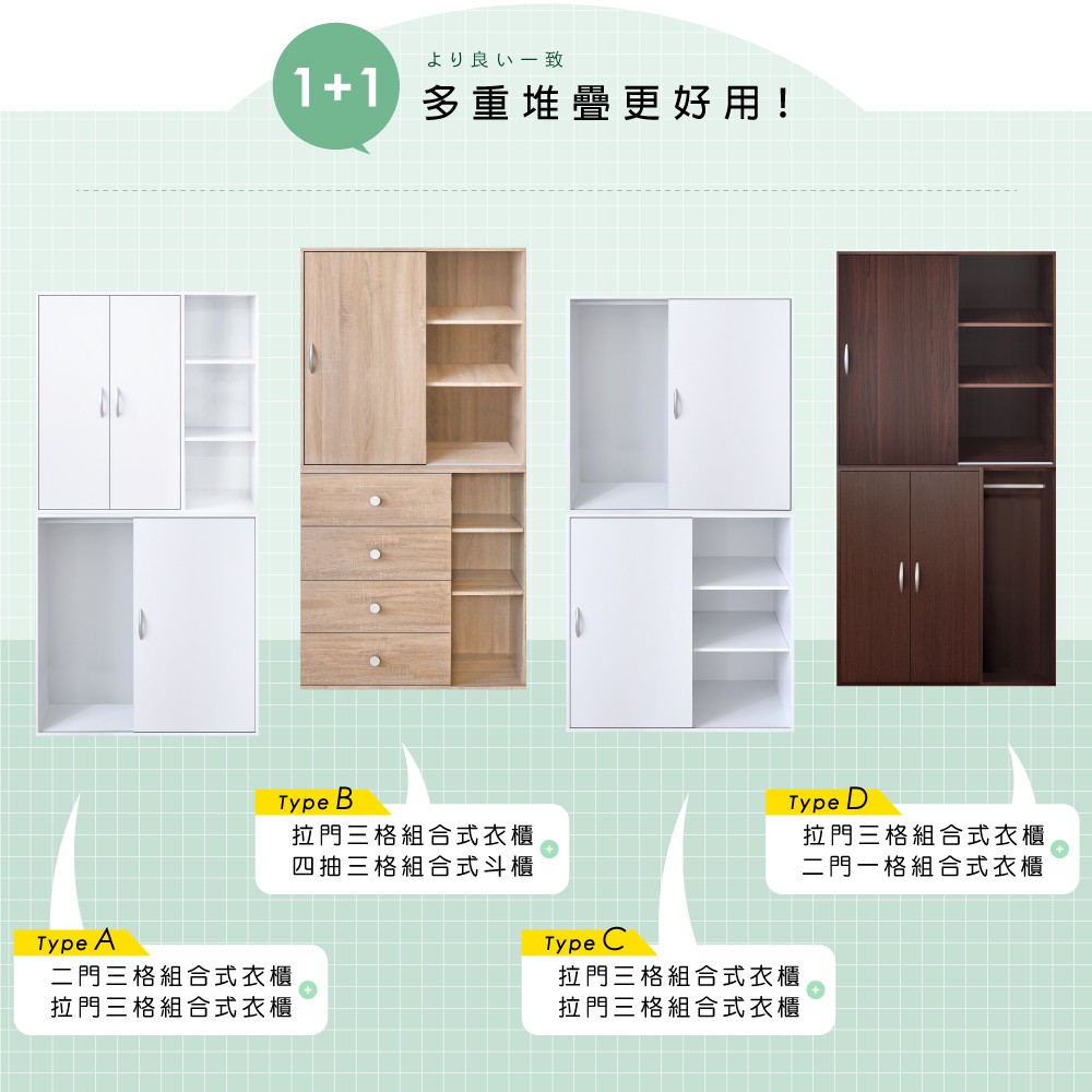 HOPMA多功能三門四格組合衣櫃 台灣製造 衣櫥A-201+A-206胡桃木|淺橡(漂流)木|時尚白WardrobesHOPMA 合馬家具
