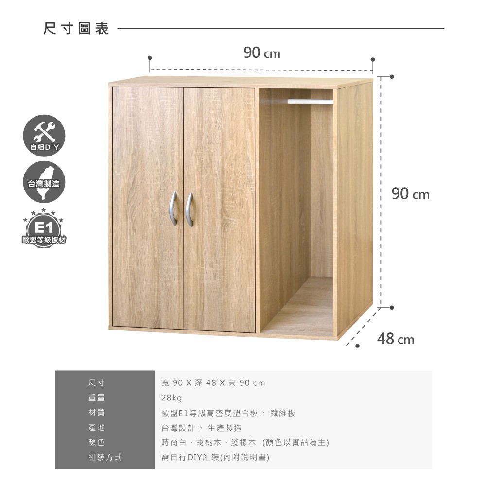 HOPMA美背二門一格組合式衣櫃 台灣製造 衣櫥 收納櫃 衣物收納櫃A-201胡桃木|時尚白|淺橡(漂流)木WardrobesHOPMA 合馬家具