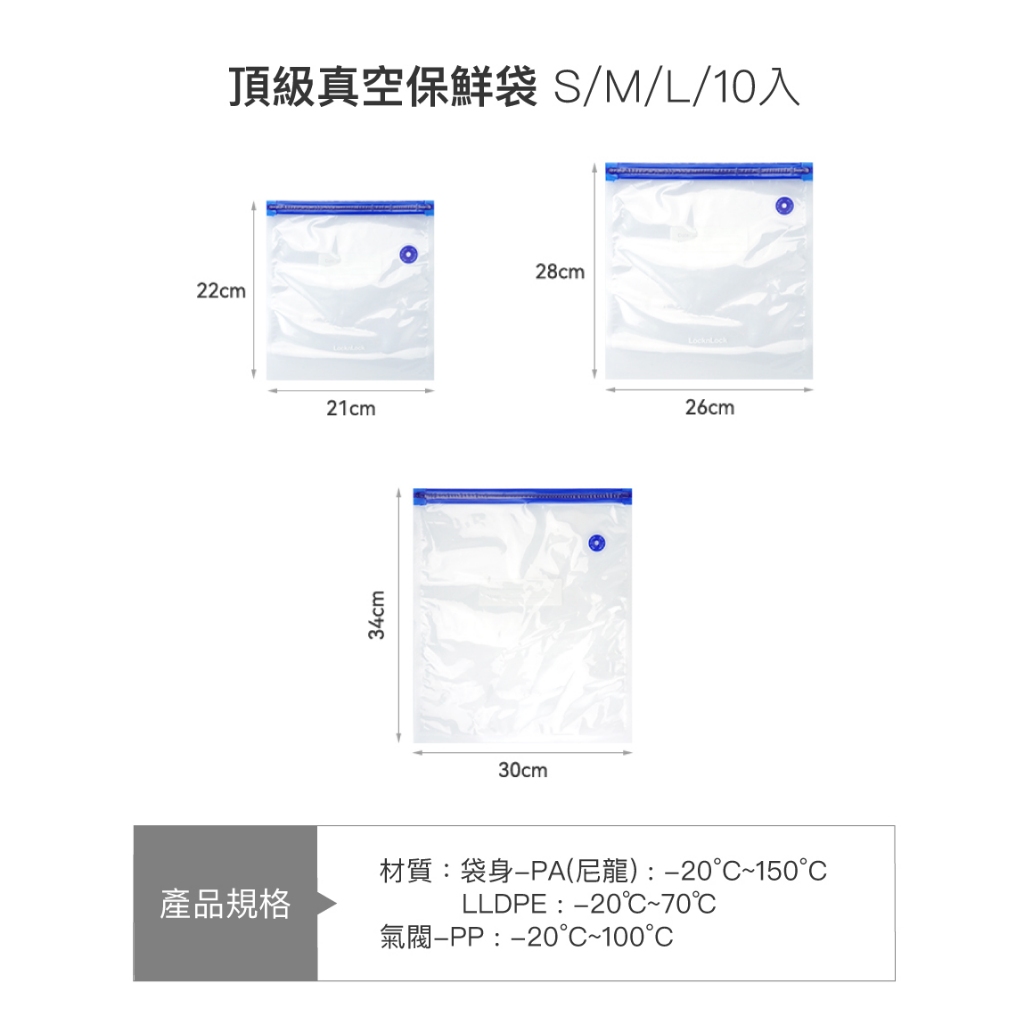 【樂扣樂扣】頂級抽真空保鮮袋(三種尺寸任選)尺寸S-10入|尺寸M-10入|尺寸L-10入Food StorageLocknLock樂扣樂扣旗艦店