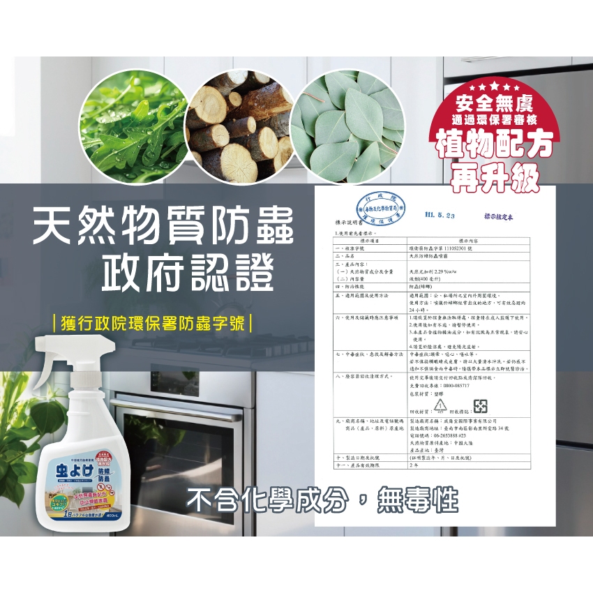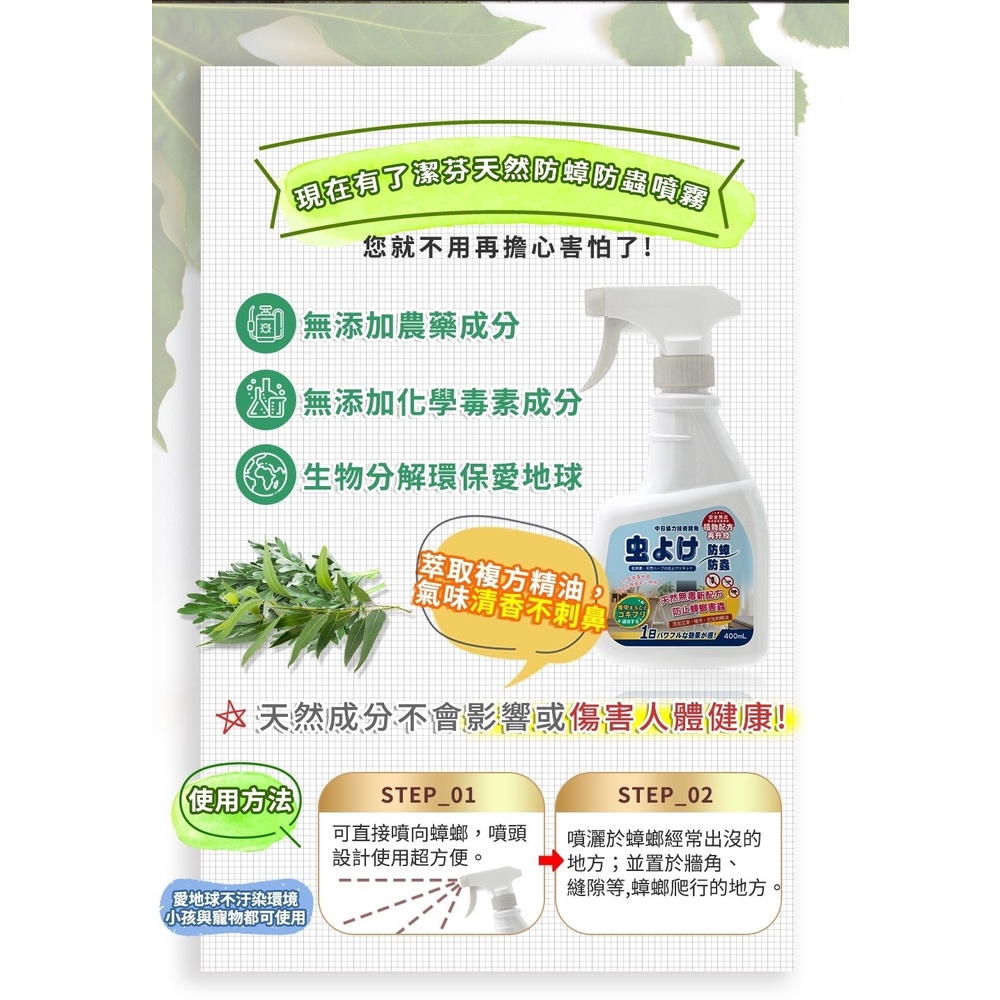 【Jie Fen潔芬】防蟑防蟲噴霧|天然成分 忌避率100%|環衛核可|夏季防蚊蟲必備|400ml1瓶|2瓶|3瓶Pest & Weed ControlJie Fen潔芬官方旗艦店