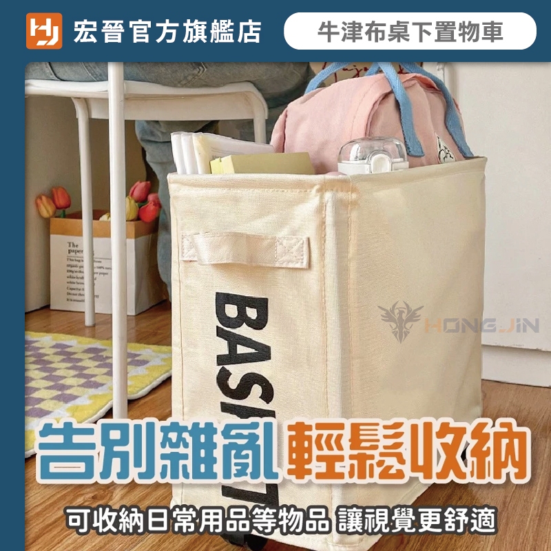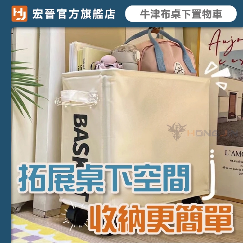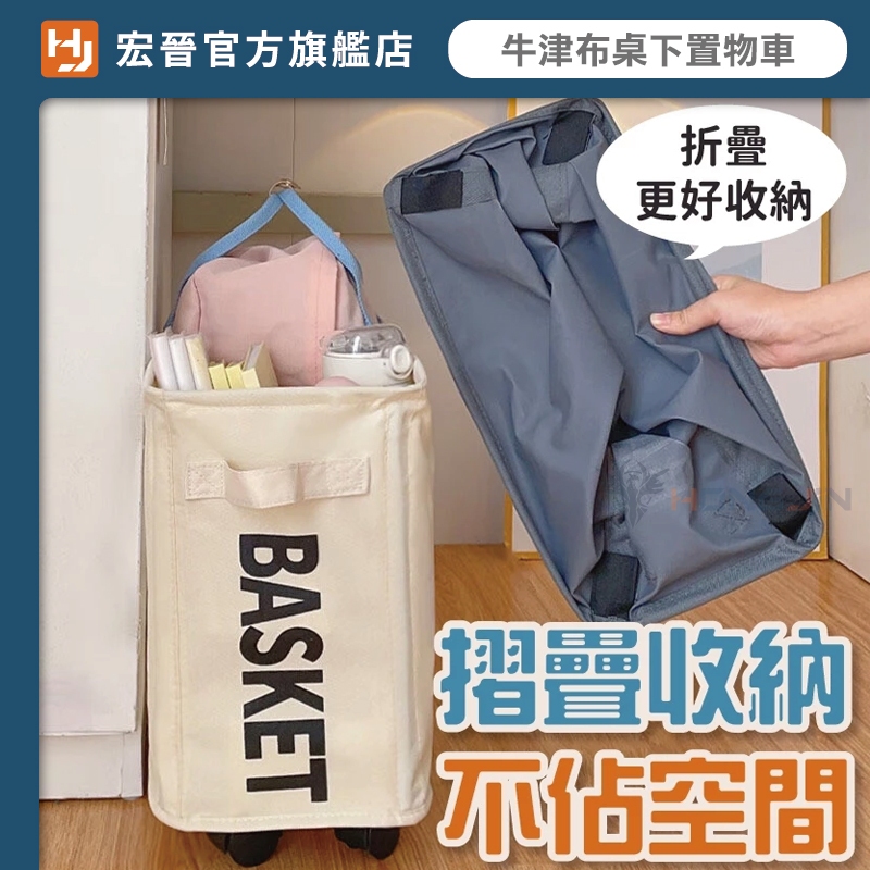 牛津布桌下置物車 加大容量 可摺疊 置物車 置物籃 桌下置物籃 摺疊收納車 收納籃 收納車 推車置物籃 小推車米白|深灰|淺灰Storage Boxes, Bags & BasketsHONG JIN 宏晉 |3C資訊廣場