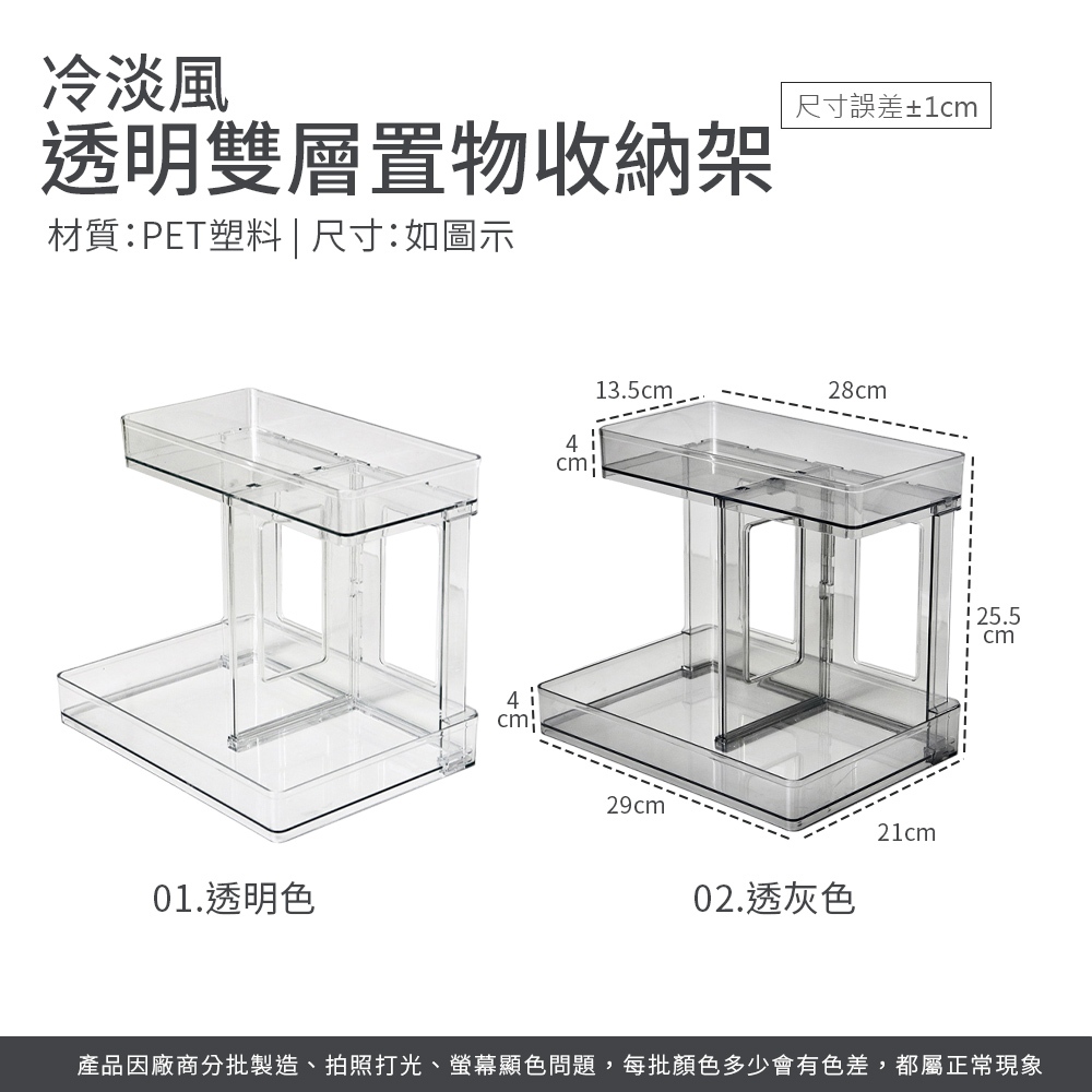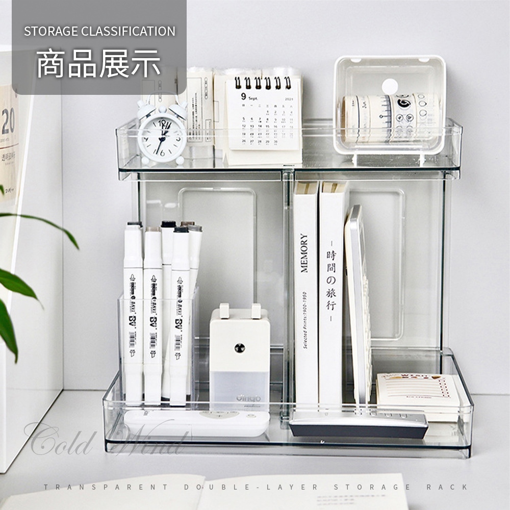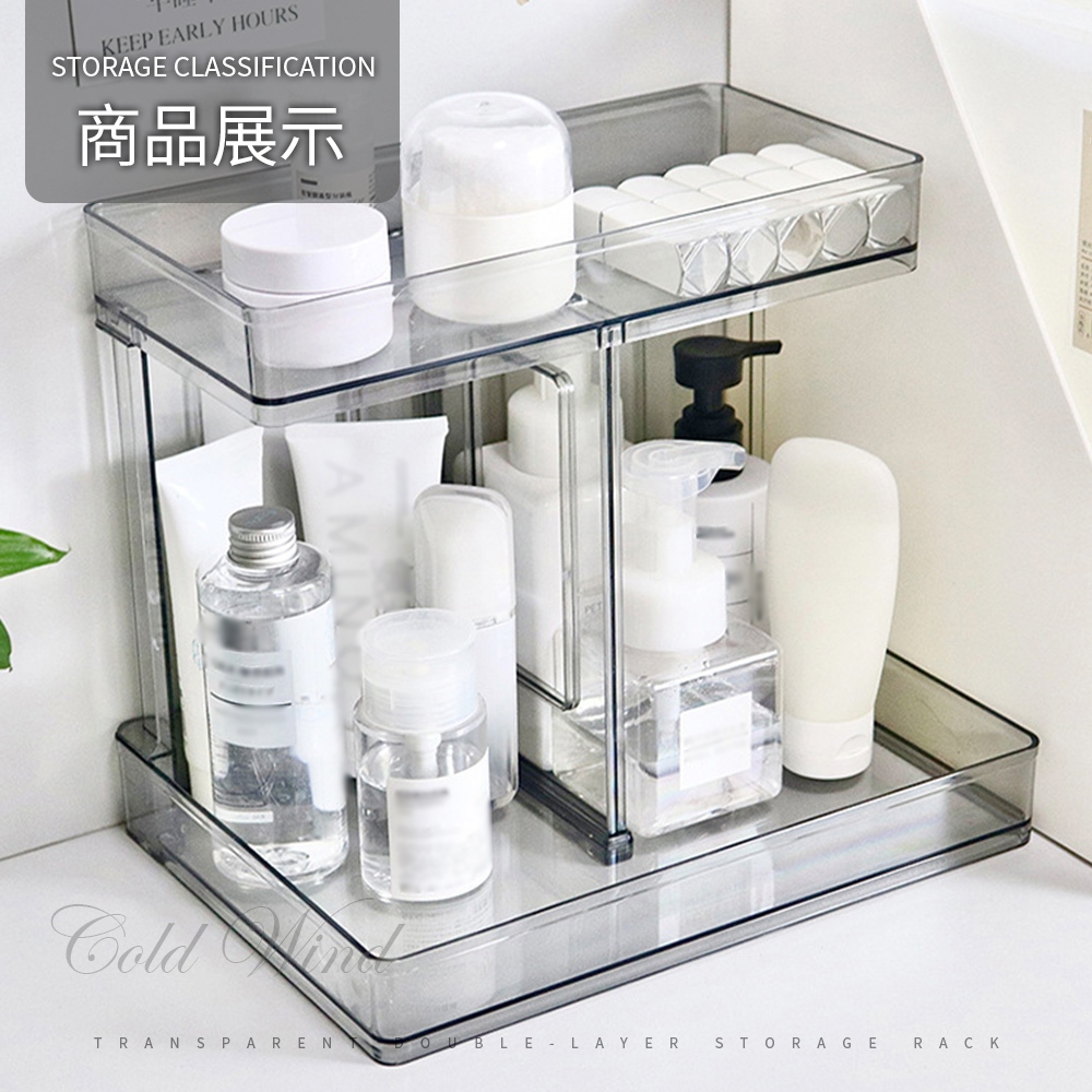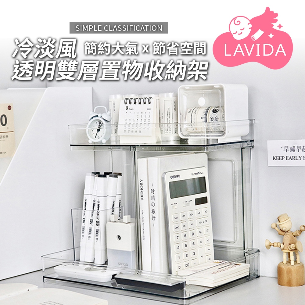 【LAVIDA嚴選】透明雙層置物收納架 彩妝收納架 冷淡風 層架 浴室收納 桌面收納 保養品收納架 香水展示架 透明收納01.透明色|02.透灰色Desk OrganizersLAVIDA 育兒好好玩!