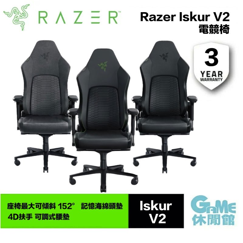 Razer 雷蛇 ISKUR V2 電競椅 布織灰/黑/綠(含頭枕)【GAME休閒館】布織灰|綠色|黑色Benches, Chairs & StoolsGAME休閒館