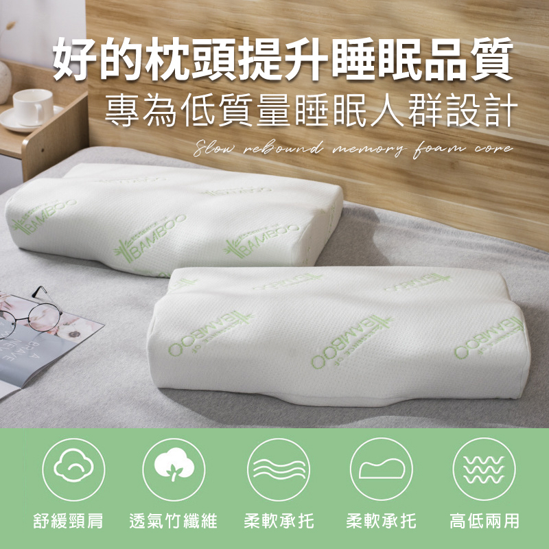 舒眠記憶枕 慢回彈枕頭 太空枕 減壓工學枕 人體工學枕 頭枕 竹纖維面料蝶型|波浪型PillowsHONG JIN 宏晉 |3C資訊廣場