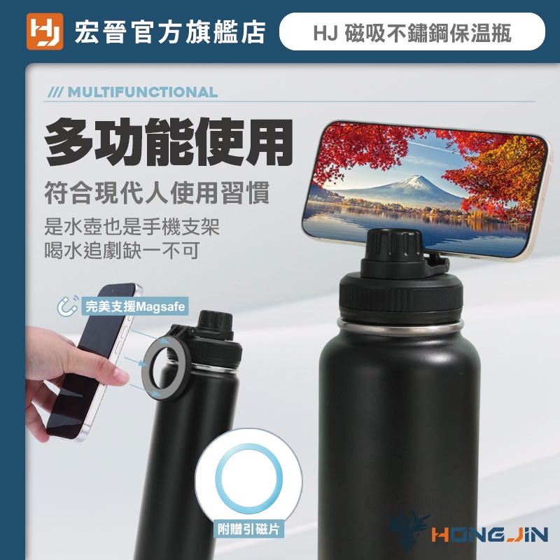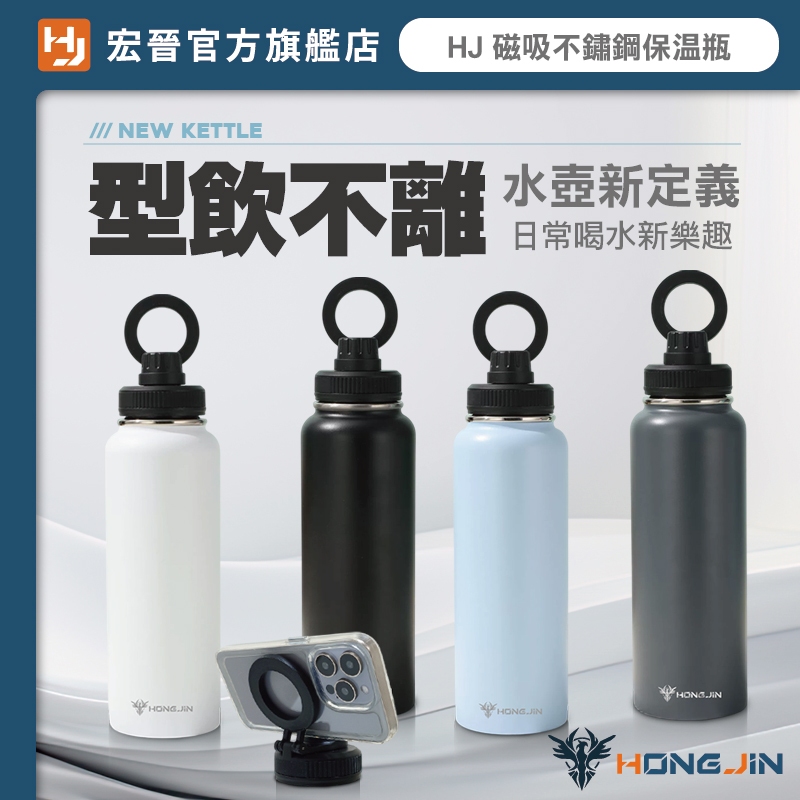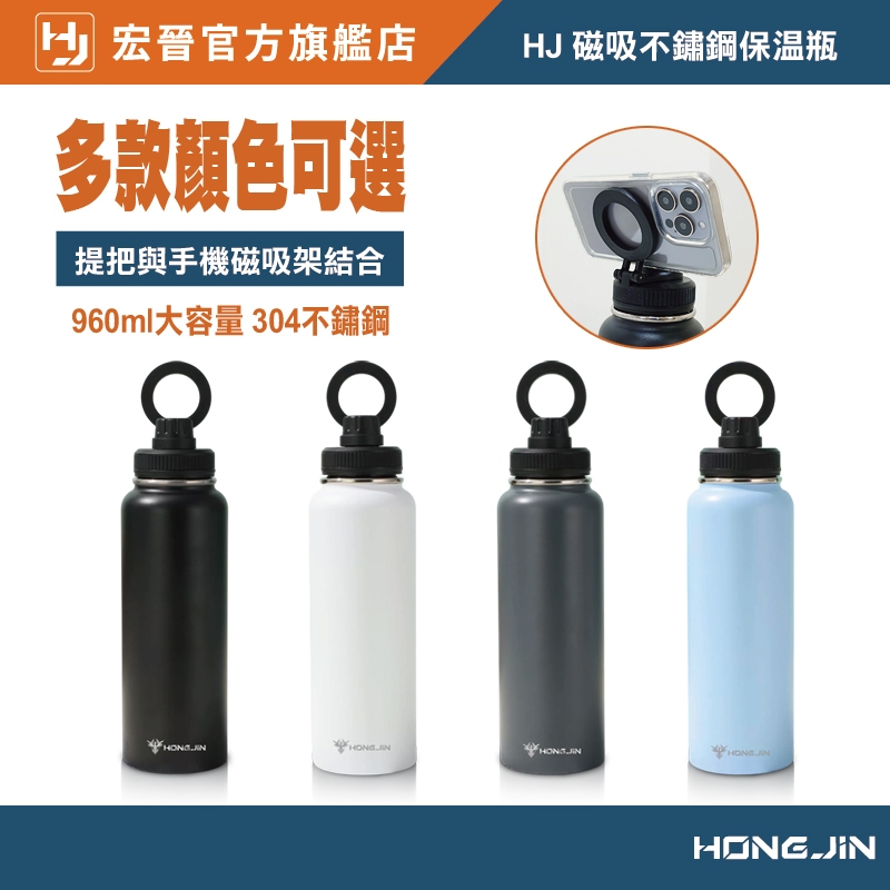宏晉 磁吸不鏽鋼保溫瓶 960ml大容量 304不鏽鋼 防漏設計 支援MagSafe手機支架 提把與磁吸支架二合一白|淺藍|黑|鐵灰Water Bottles & AccessoriesHONG JIN 宏晉 |3C資訊廣場