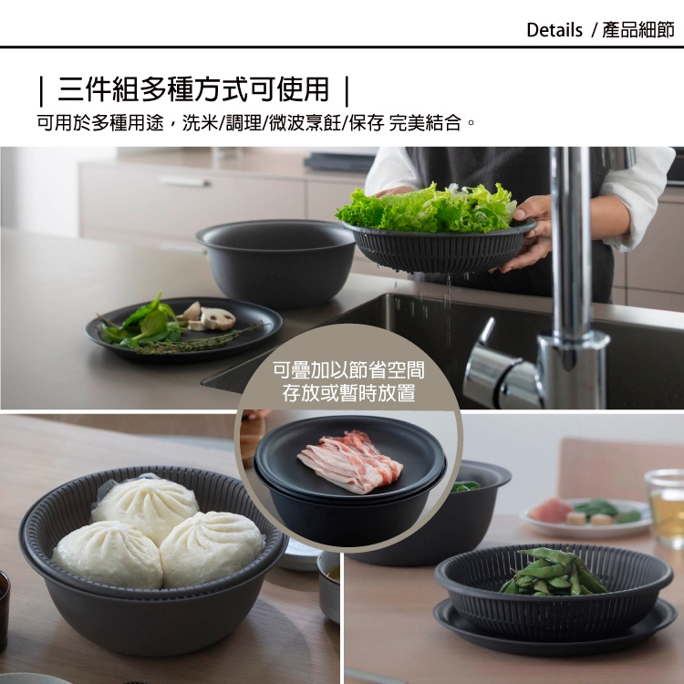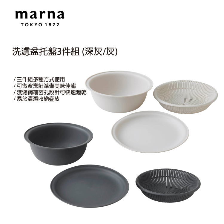 【marna 日本】不粘鍋廚具系列-多用途濾盆三件組灰|深灰Strainersmarna 官方旗艦店