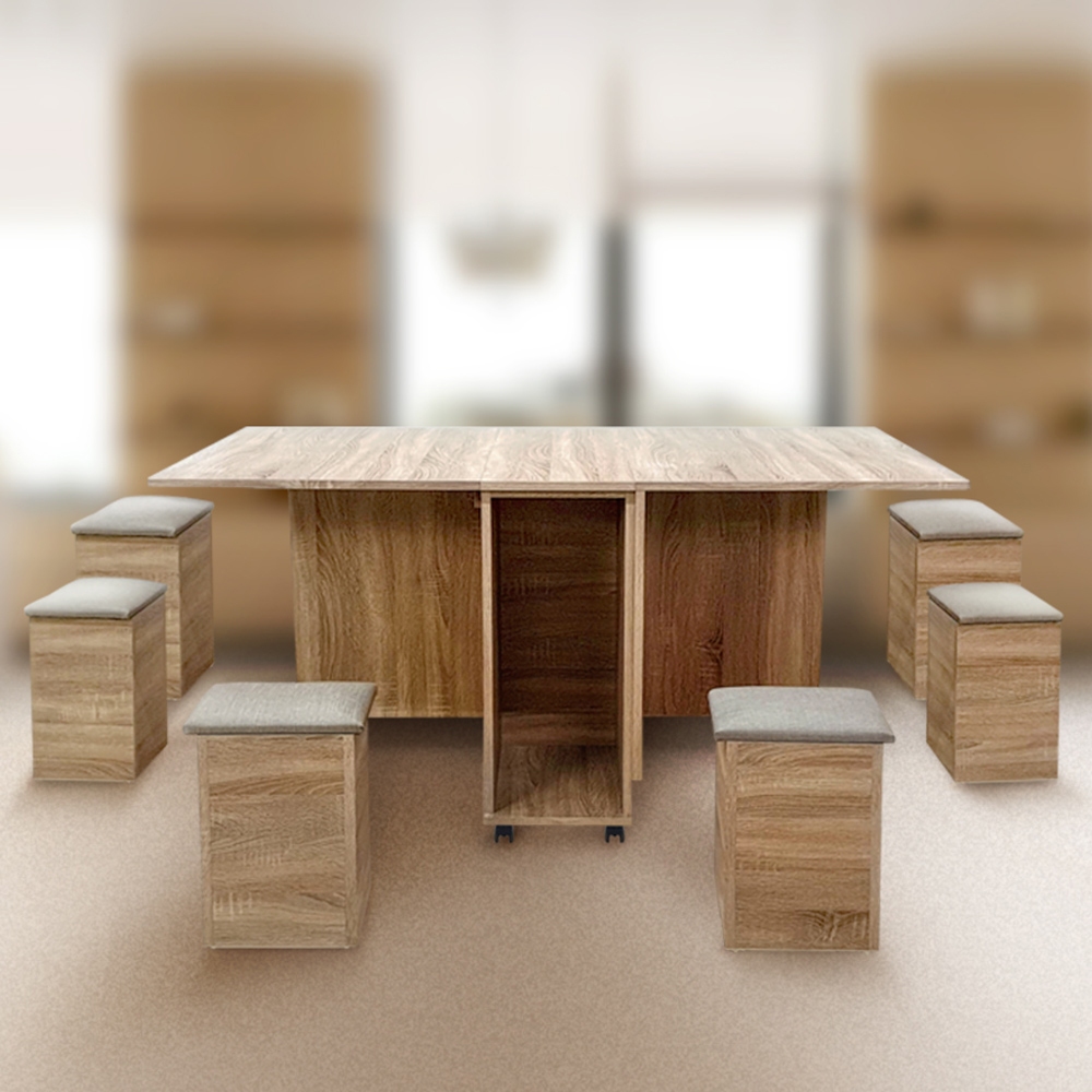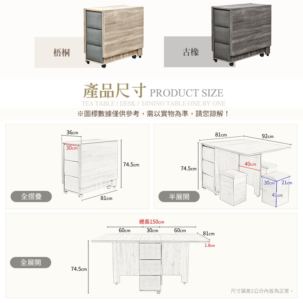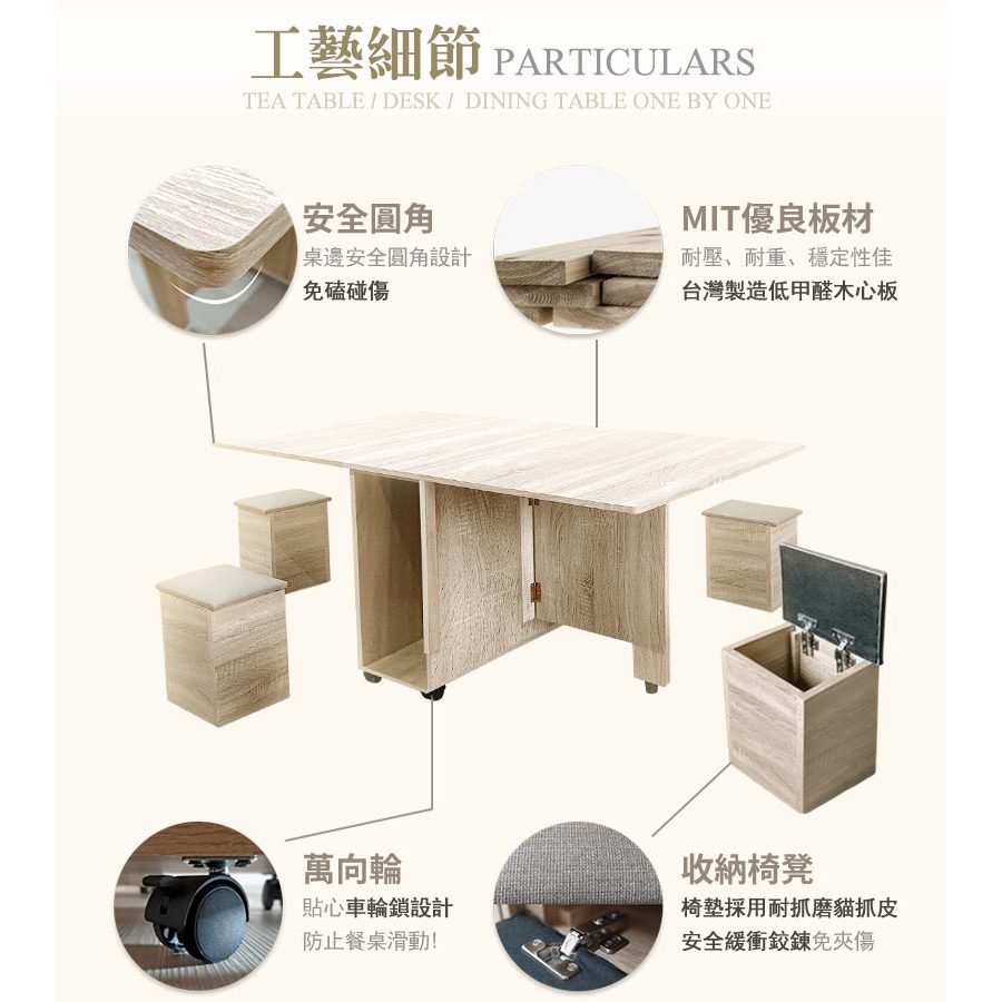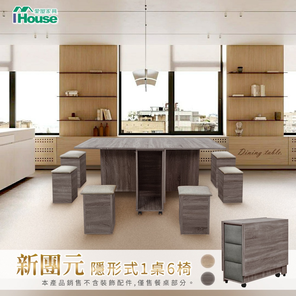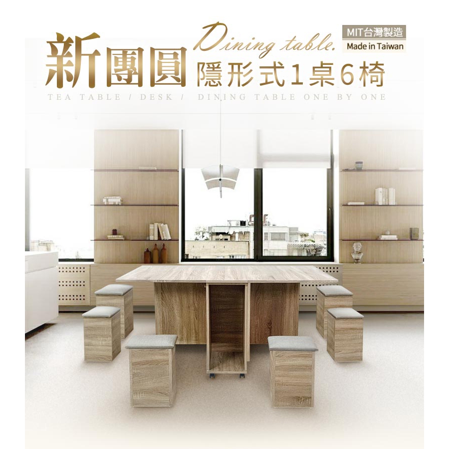 IHouse-新團圓 MIT免組裝 1桌6椅 可移動式收合蝶型餐桌梧桐色(淺)|古橡色(深)Desks & TablesIHouse 愛屋家具【免組裝家具/木心板家具/工廠直營】