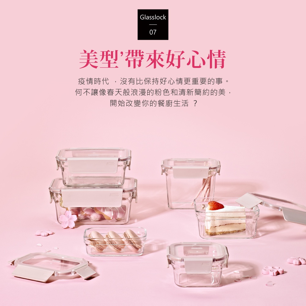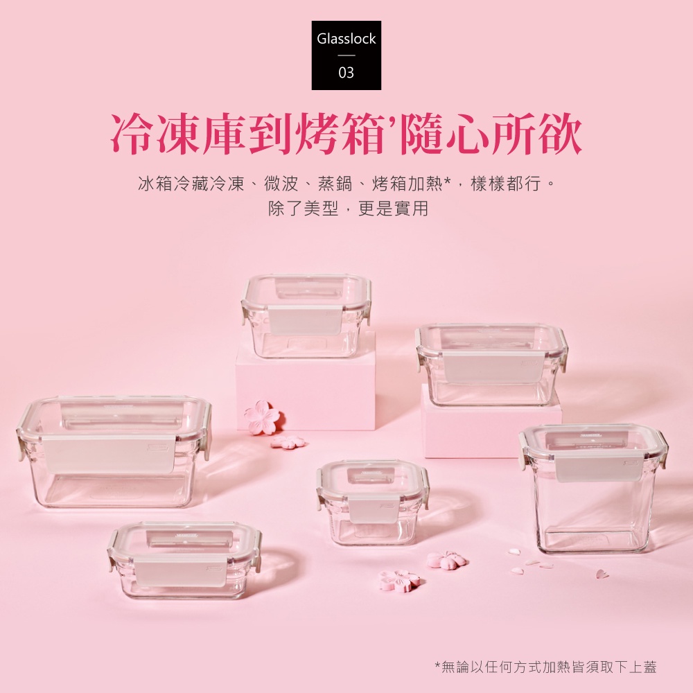Glasslock 櫻花粉晶透上蓋強化玻璃微波烤箱兩用保鮮盒-方形8入組Glasslock 櫻花粉晶透上蓋強化玻璃微波烤箱兩用保鮮盒-方形8入組Food StorageGlasslock 韓國強化玻璃保鮮盒-官方直營