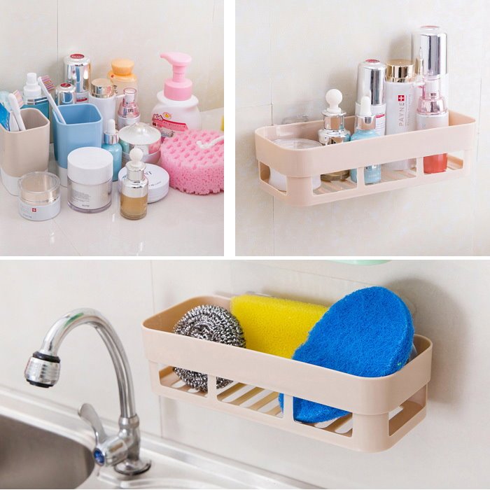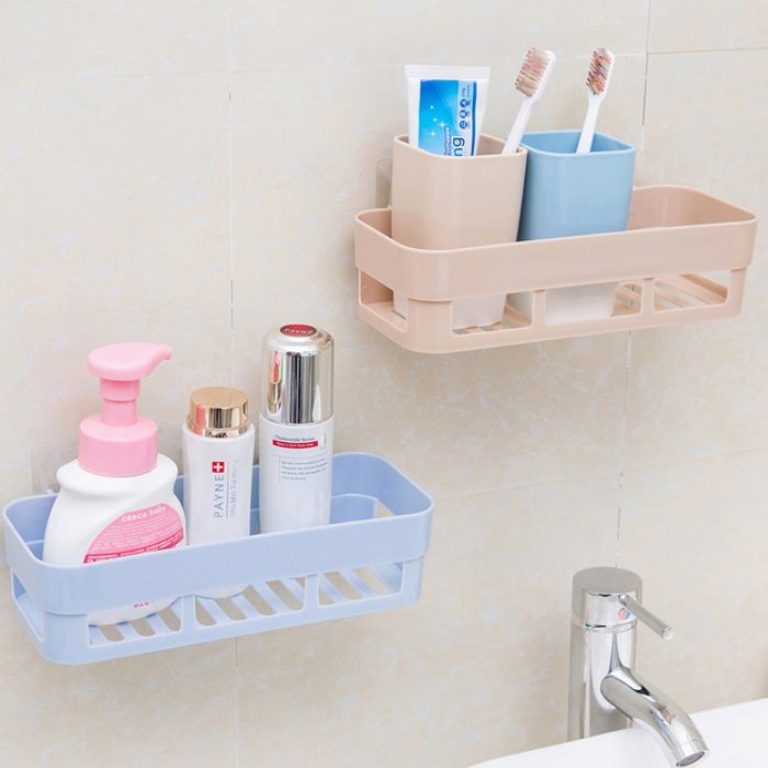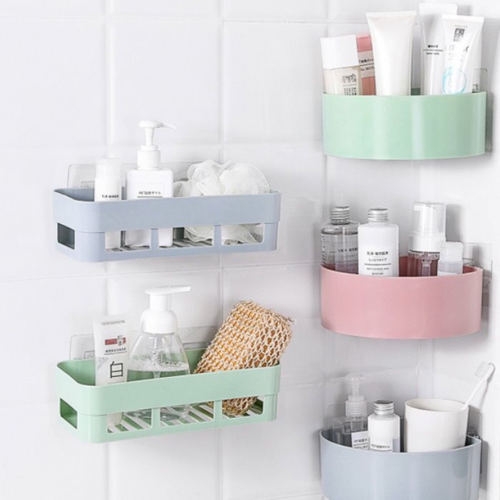 長方形置物架 無痕 免釘 浴室置物架 粘貼式 收納架 瀝水 置物架 收納盒【DG316】A北歐粉|B北歐藍|C北歐綠|D北歐黃Bathroom Racks & CabinetsJOLIN久林批發~台灣出貨~滿50再結帳~