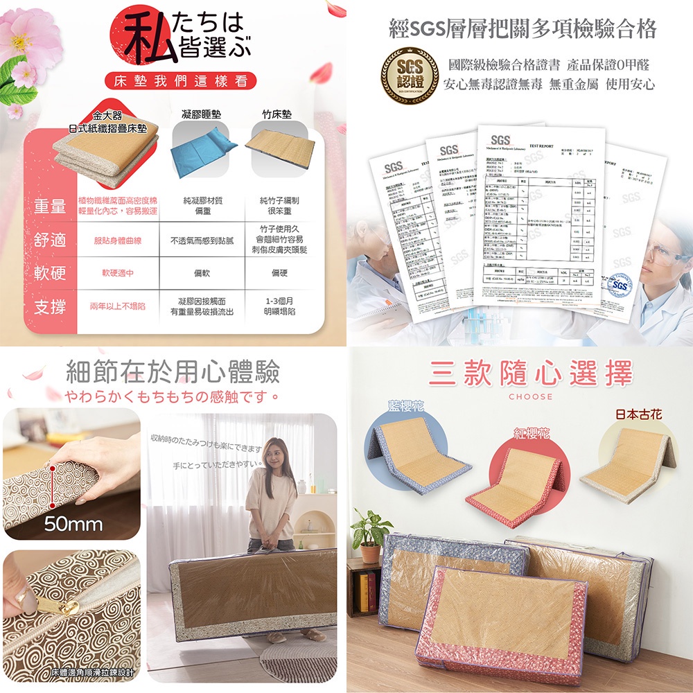 【金大器】極厚5cm日和風摺疊透氣床墊-日本古花 四季兩用墊 植物纖維涼蓆面料 學生外宿 輕便攜帶 三折疊 榻榻米3.5尺單人加大(105*186cm),正常規格|6尺雙人加大(180*186cm),正常規格|3尺單人(90*182cm),正常規格|5尺標準雙人(150*186cm),正常規格|7尺雙人特大(180*210cm),正常規格MattressesJINDACHI金大器精品寢具-官方旗艦|天絲/床包/棉被/枕頭/床墊/椅靠墊