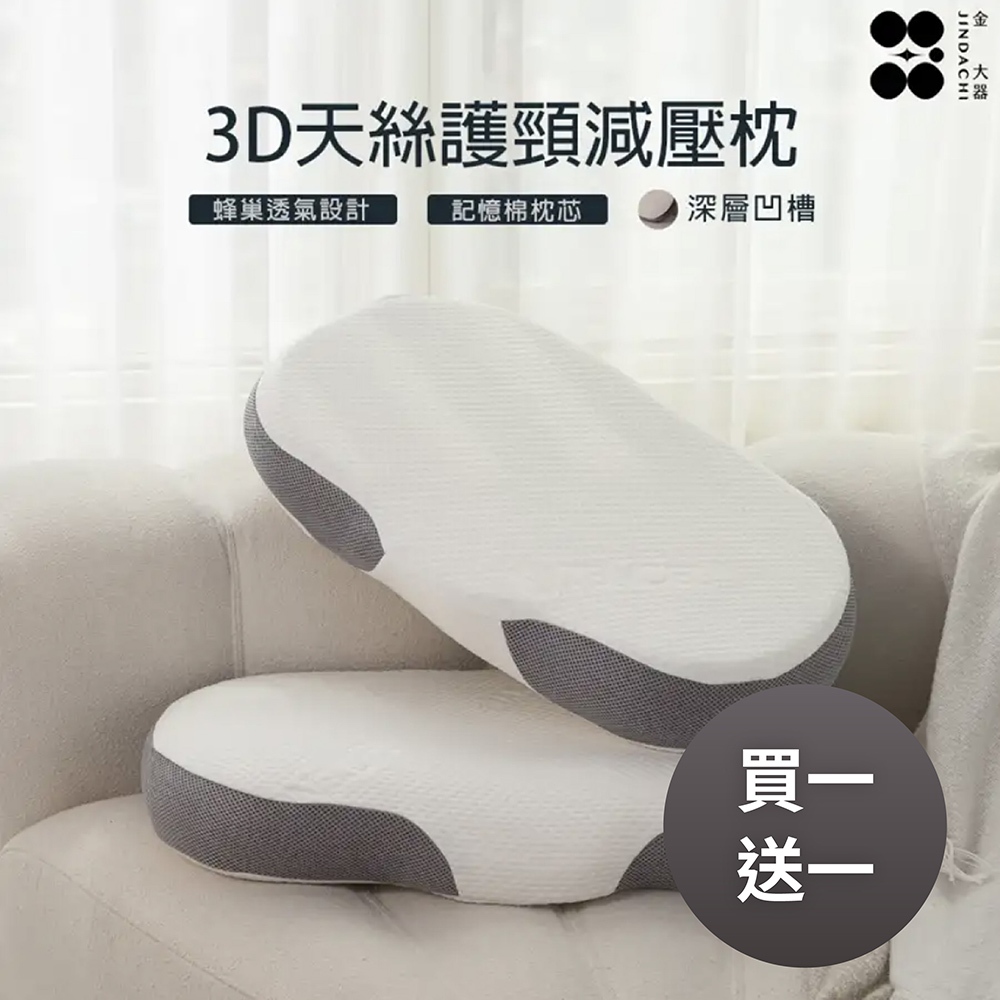 【金大器】【買一送一】3D曲線天絲護頸減壓枕 全方位釋壓承托 分區零壓力 助眠枕 止鼾枕 雲朵枕 釋壓枕 眠豆枕 太空枕天絲(一入組)|天絲(買一送一) (超商限1組)PillowsJINDACHI金大器精品寢具-官方旗艦|天絲/床包/棉被/枕頭/床墊/椅靠墊