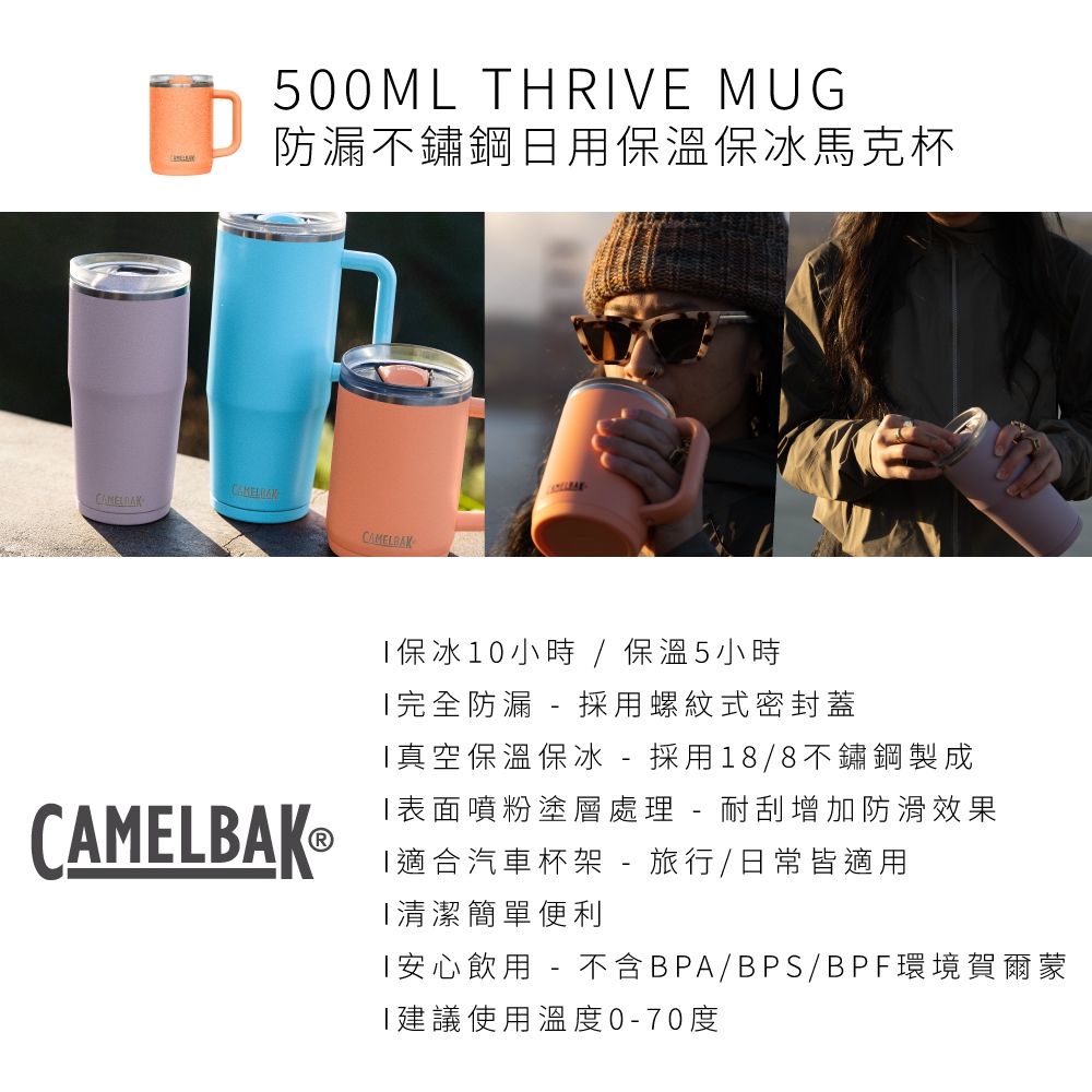 CAMELBAK 500ml THRIVE MUG 防漏不鏽鋼雙層真空保溫/保冰馬克杯灰綠|日出橘|天空紫|經典白|濃黑|海軍藍|北歐藍Water Bottles & Accessoriesimitu 米圖