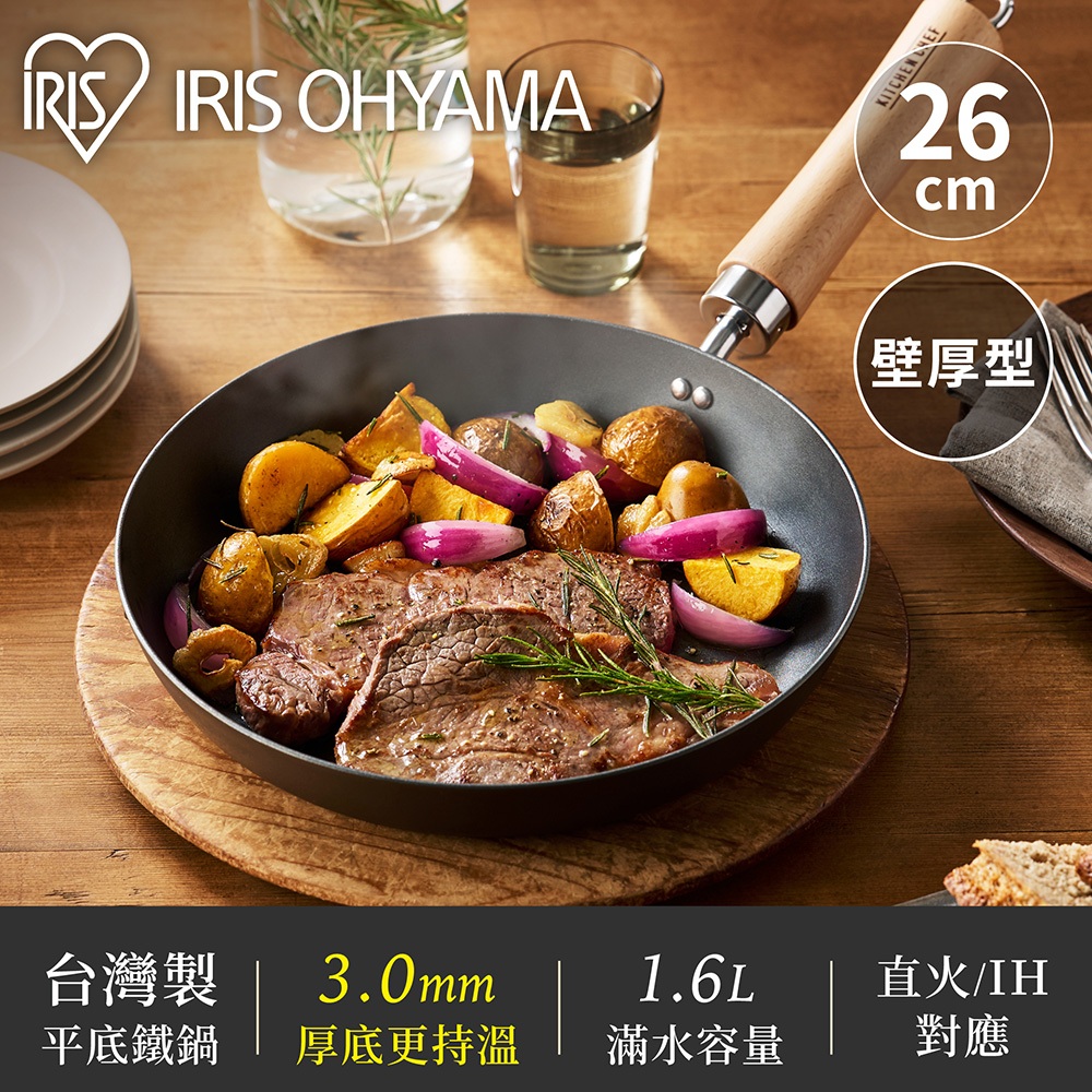 IRIS OHYAMA 台灣製壁厚型平底鍋26cm 直火IH對應 SCP-T26(炒鍋)壁厚型 26cm SCP-T26PansIRIS OHYAMA 台灣愛麗思歐雅瑪