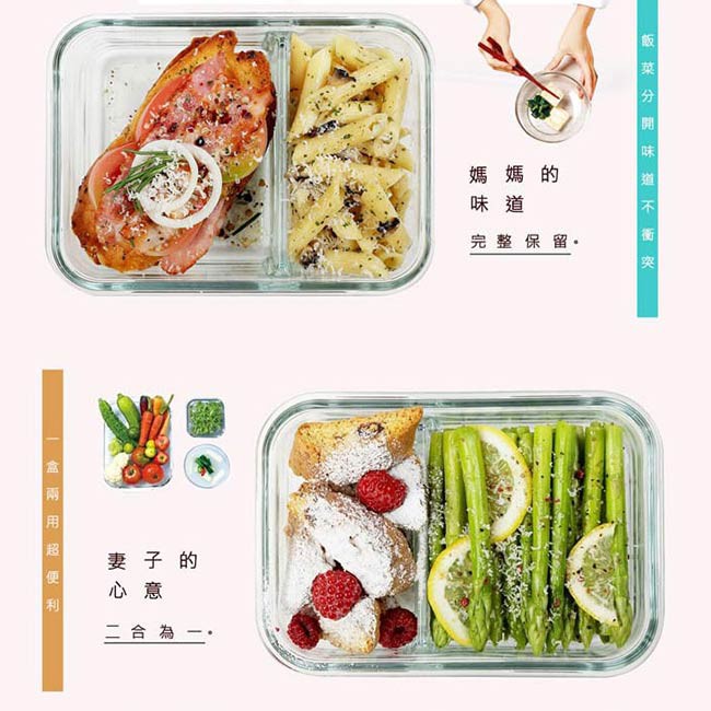 Glasslock 強化玻璃分格微波保鮮盒 – 分隔長方形1000ml
