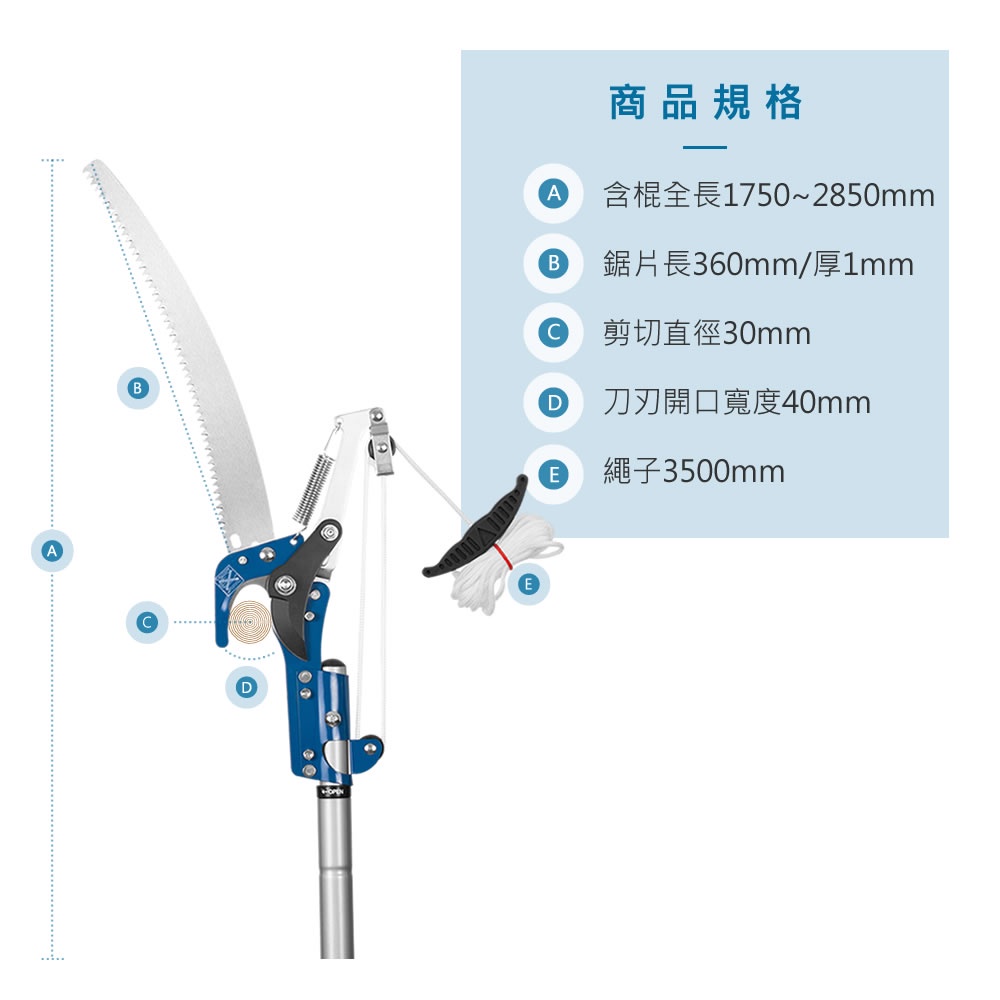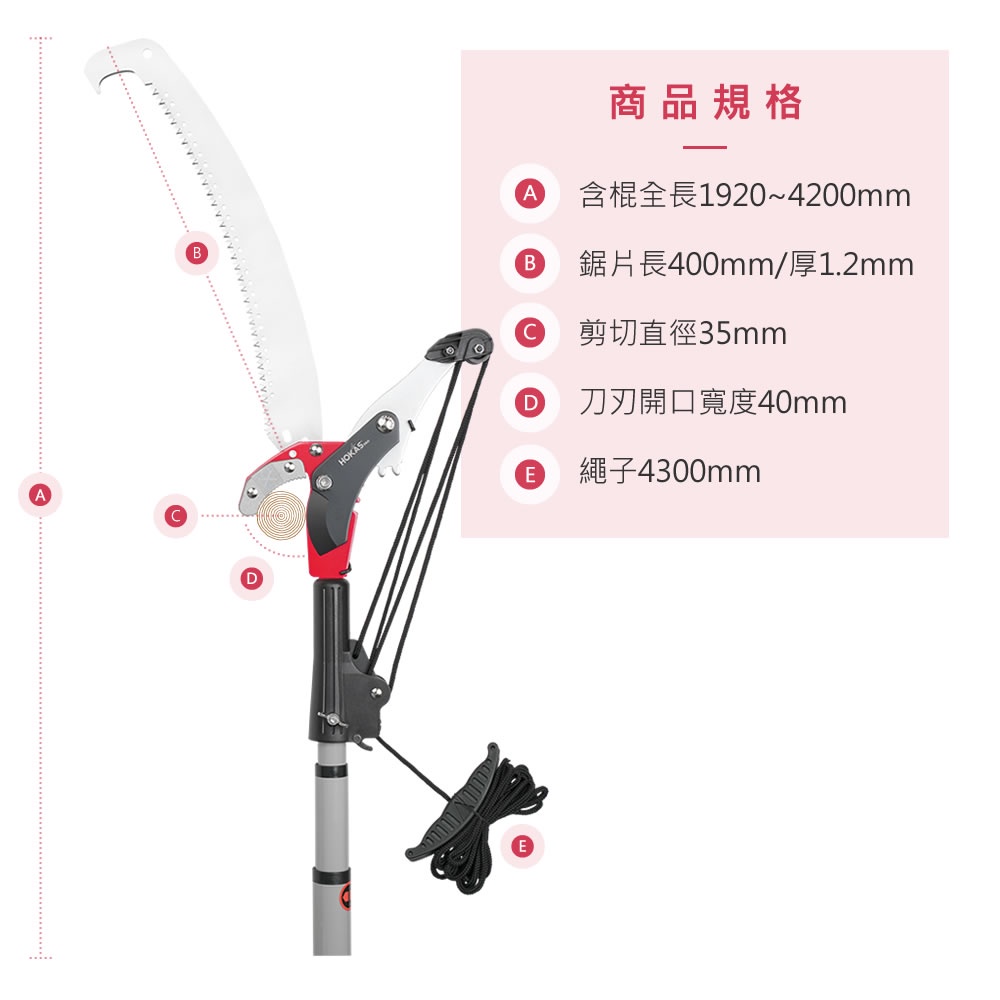 【HOKAS】S104基本款高空樹剪 (修枝剪 高空剪 高枝剪 長剪鋸 園藝剪刀 樹剪 果樹剪 適用3.4米高的樹木)整組式(2.4米鋁棍兩節)|基本款高枝剪-純刀頭Gardening ToolsHOKAS 園藝剪刀