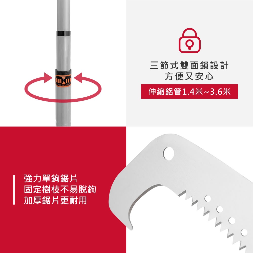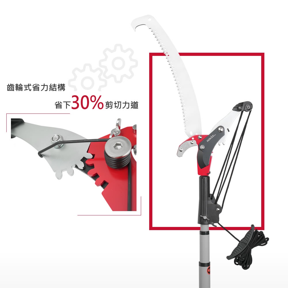 【HOKAS】S124極致省力齒輪式高空樹剪 (高枝樹剪 高枝鋸 高枝剪 高空鋸 園藝剪 長鋸子 適用4.5米高樹木)整組式(3米棍)+增購鯊魚齒鋸片|整組式(3.6米棍)+增購鯊魚齒鋸片|整組式(3.6米棍)|整組式(3米棍)|S124刀頭(不含棍)Gardening ToolsHOKAS 園藝剪刀