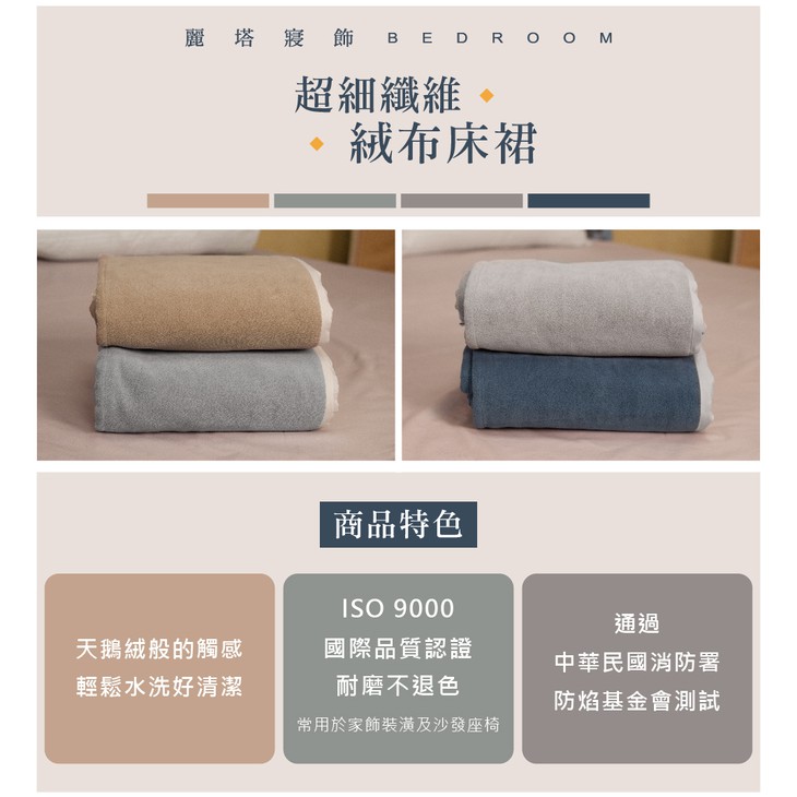 麗塔寢飾 雙人特大(6×7)超細纖維絨布床裙/裙長26cm/共4色/居家裝飾好幫手/車工精緻/熱銷單品米色|綠色|灰色|藍色OthersLITA麗塔寢飾