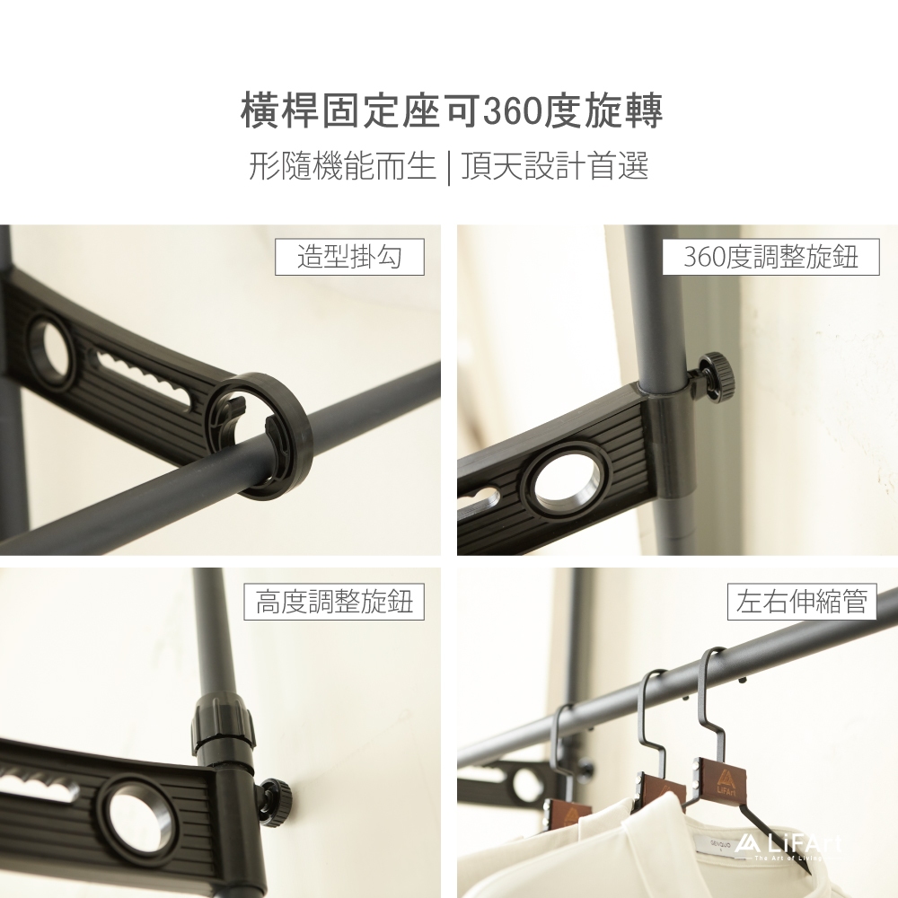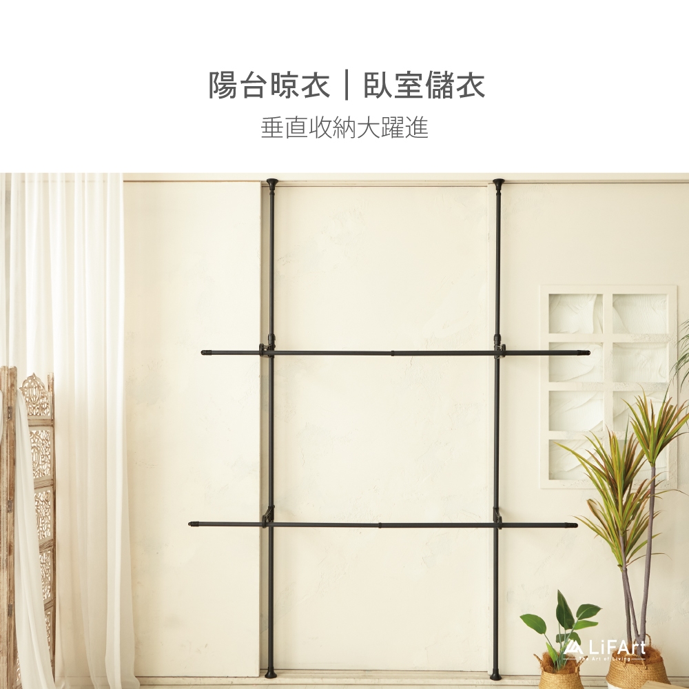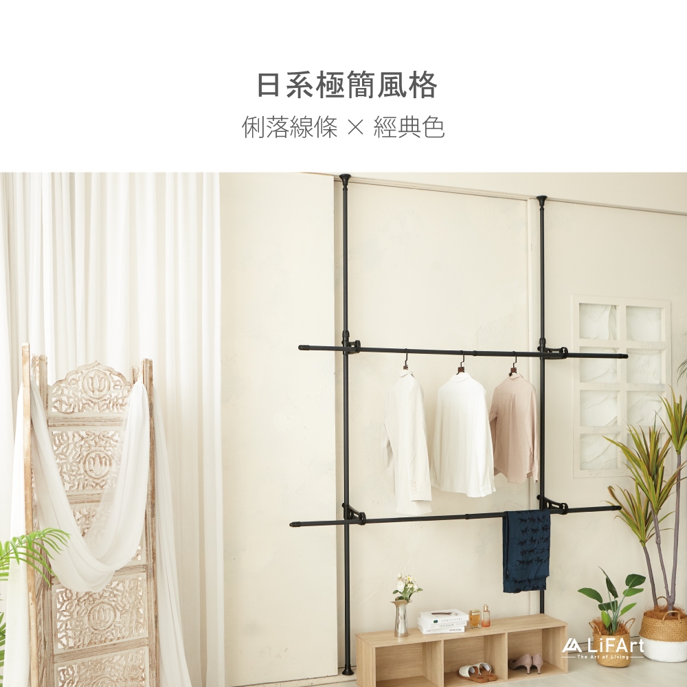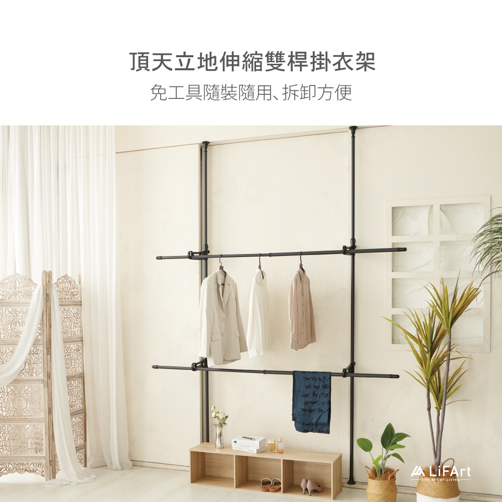 【LiFArt】頂天立地雙桿伸縮掛衣架(曬衣架/室內曬衣/粗管徑高承重)[現貨]黑色|白色Clotheslines & Drying RacksLiFArt家居生活旗艦館