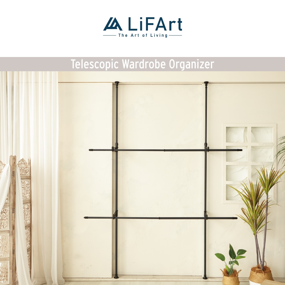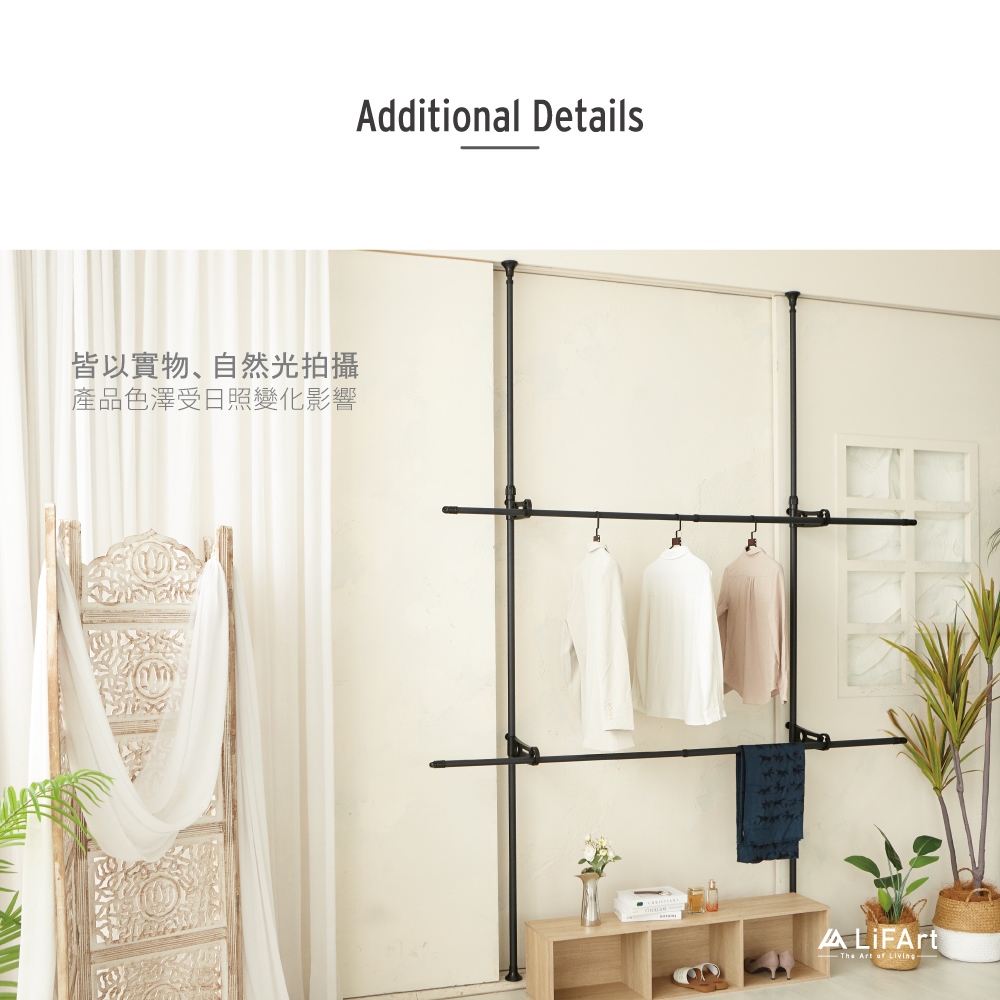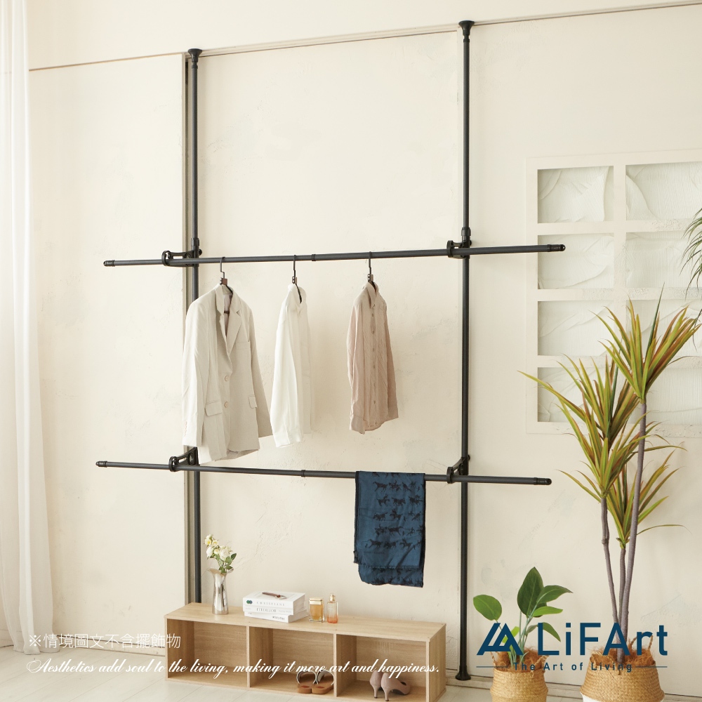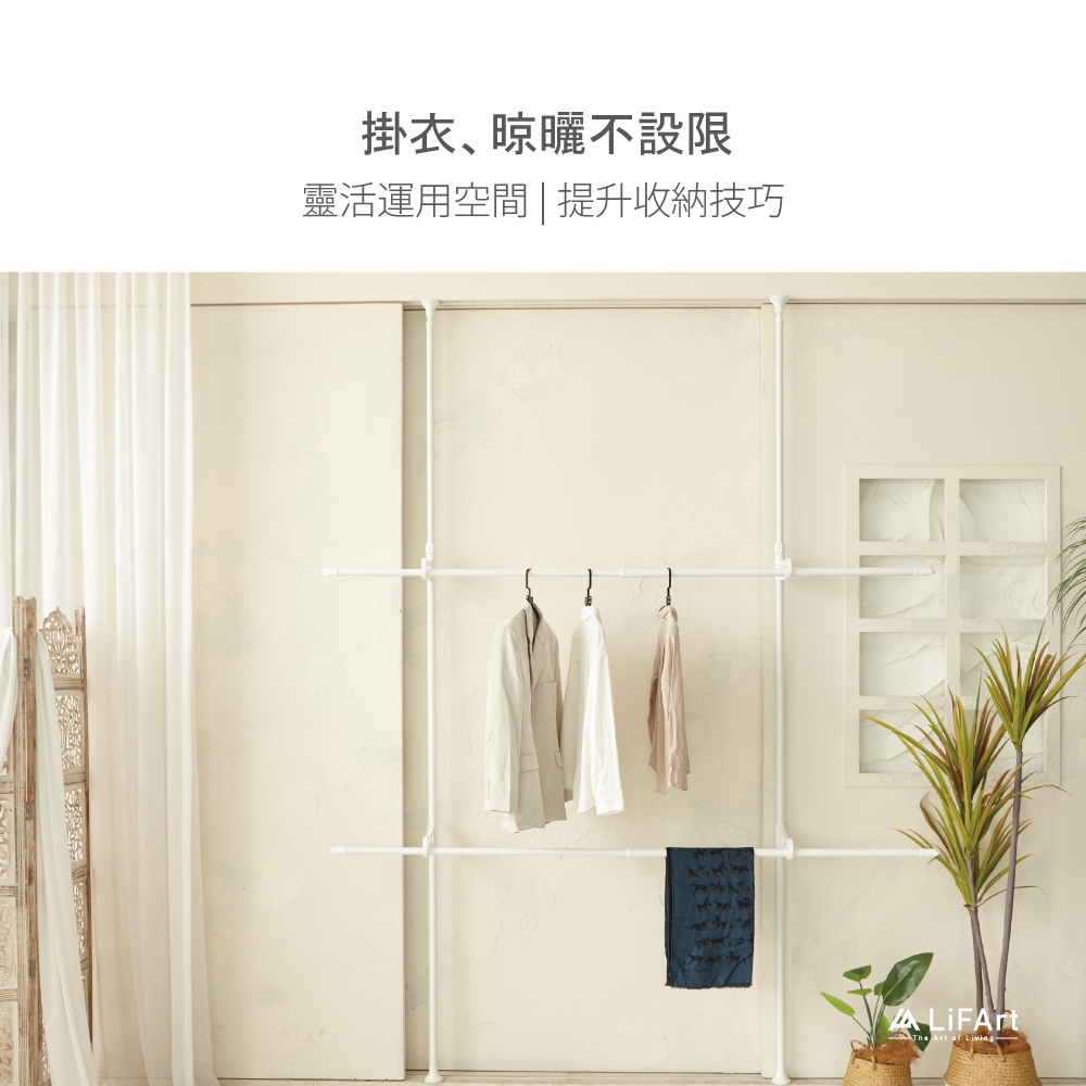 【LiFArt】頂天立地雙桿伸縮掛衣架(曬衣架/室內曬衣/粗管徑高承重)[現貨]黑色|白色Clotheslines & Drying RacksLiFArt家居生活旗艦館
