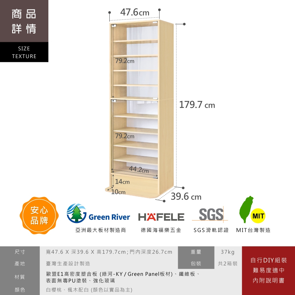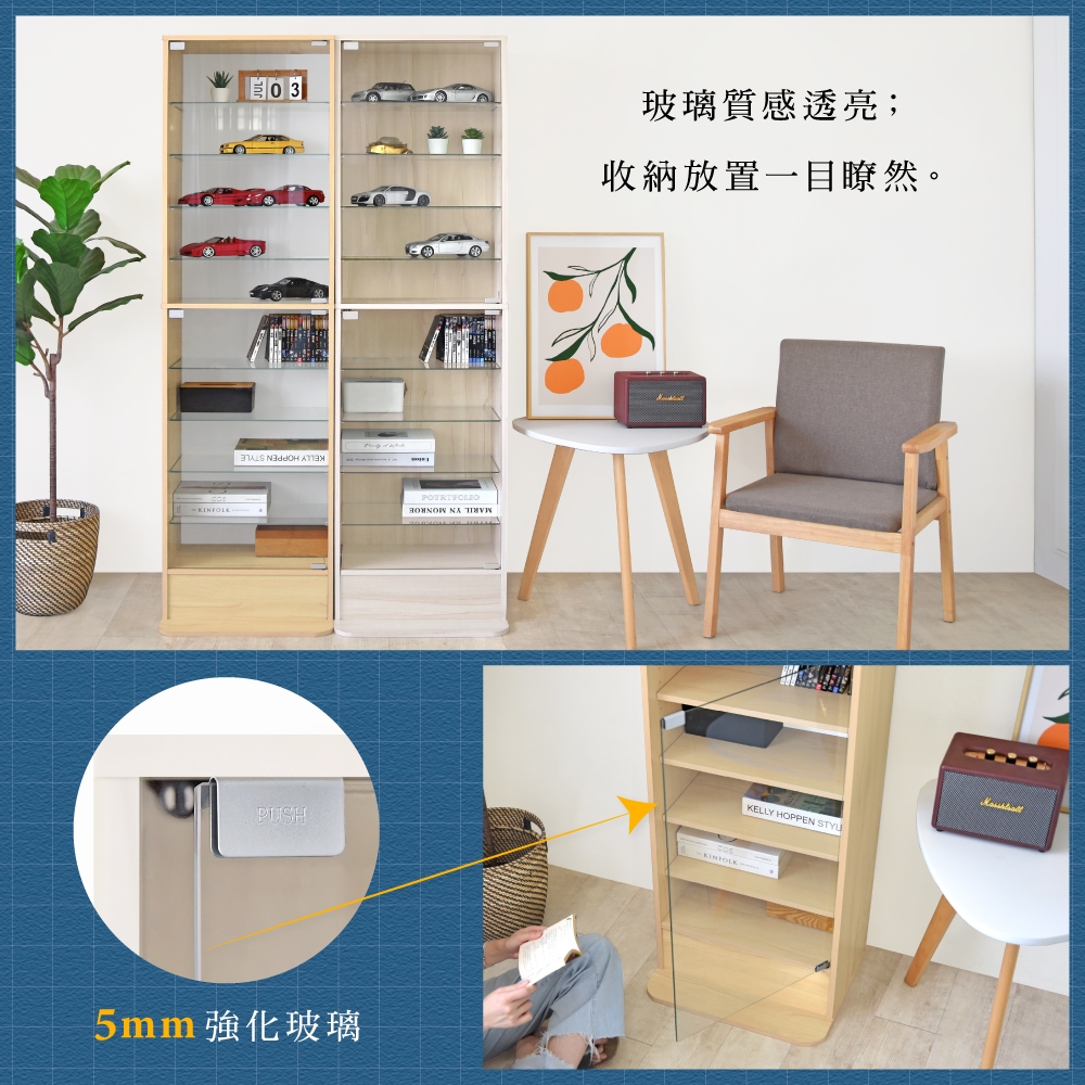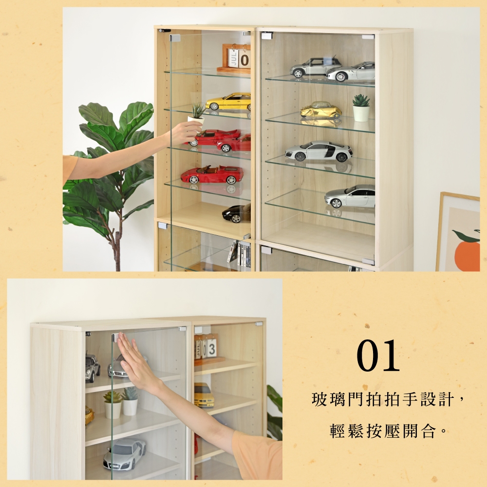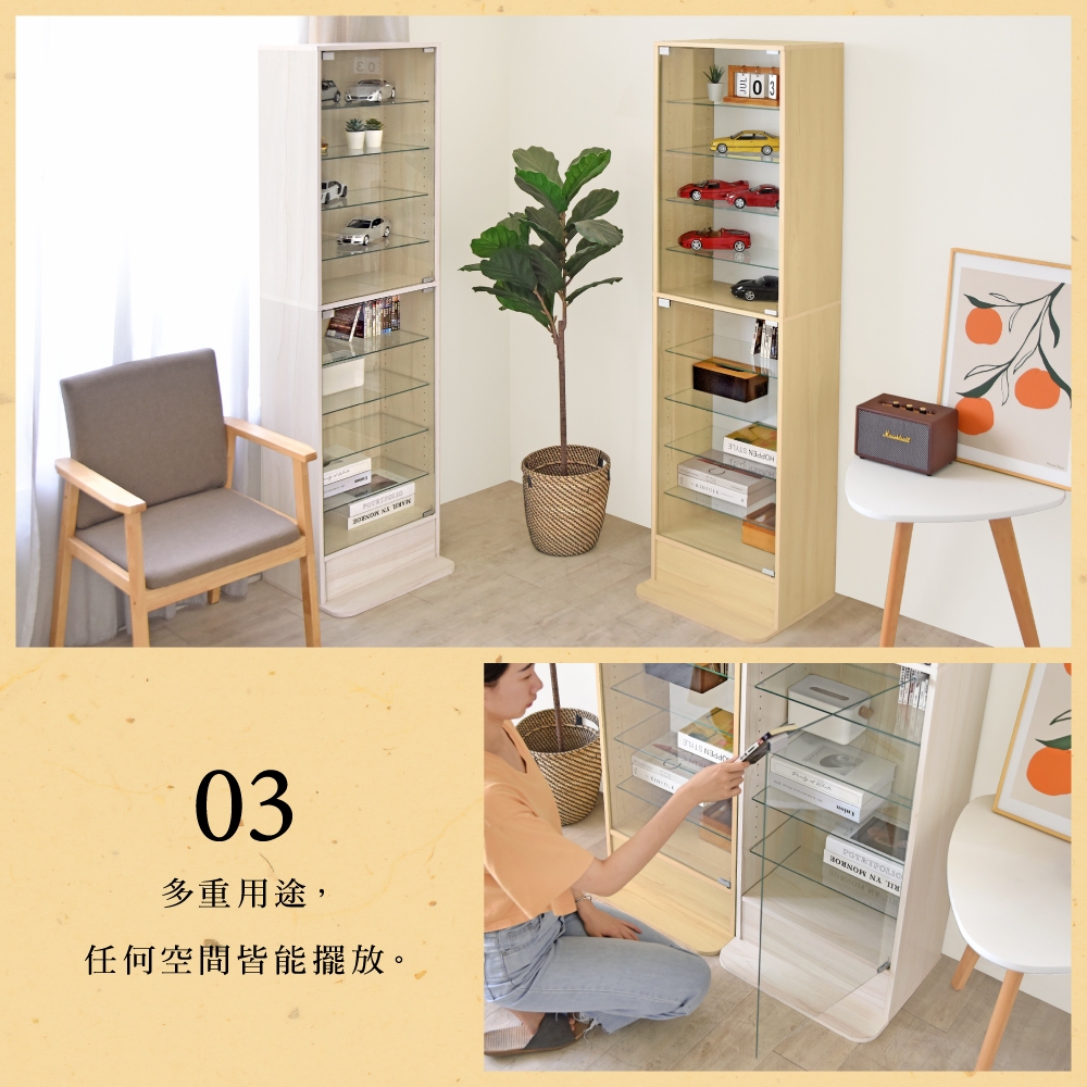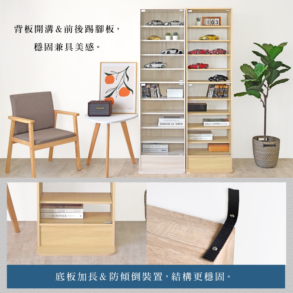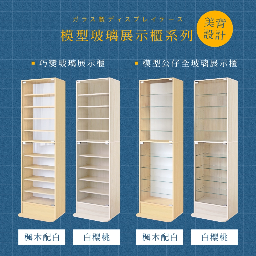 HOPMA美背巧變玻璃展示櫃 台灣製造 模型公仔 十層收納 儲藏書櫃 玄關置物G-GS999白櫻桃|楓木配白Cupboards & CabinetsHOPMA 合馬家具