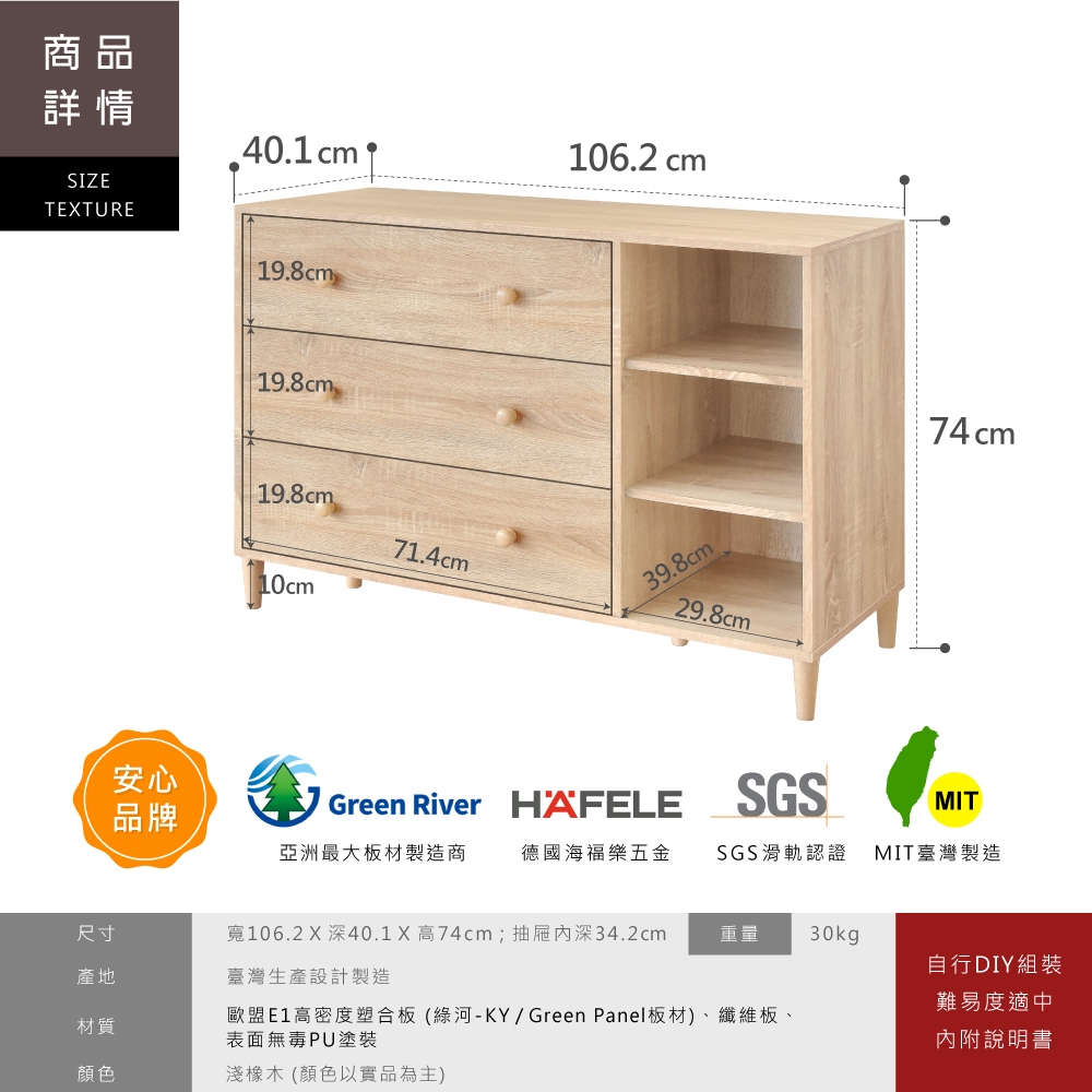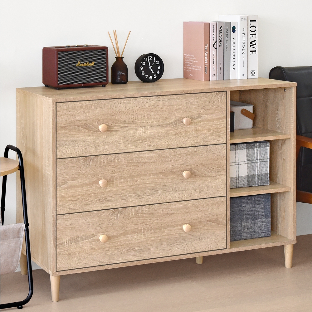 HOPMA美背伍德實木腳三抽三格斗櫃 台灣製造 床頭櫃 抽屜櫃 衣物收納櫃 邊櫃PC-B-NS337淺橡(漂流)木Cupboards & CabinetsHOPMA 合馬家具