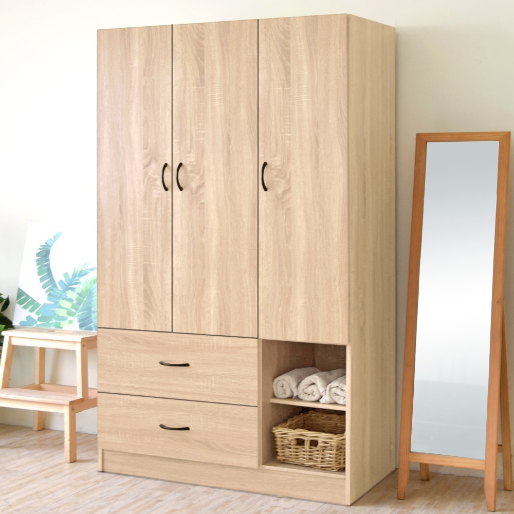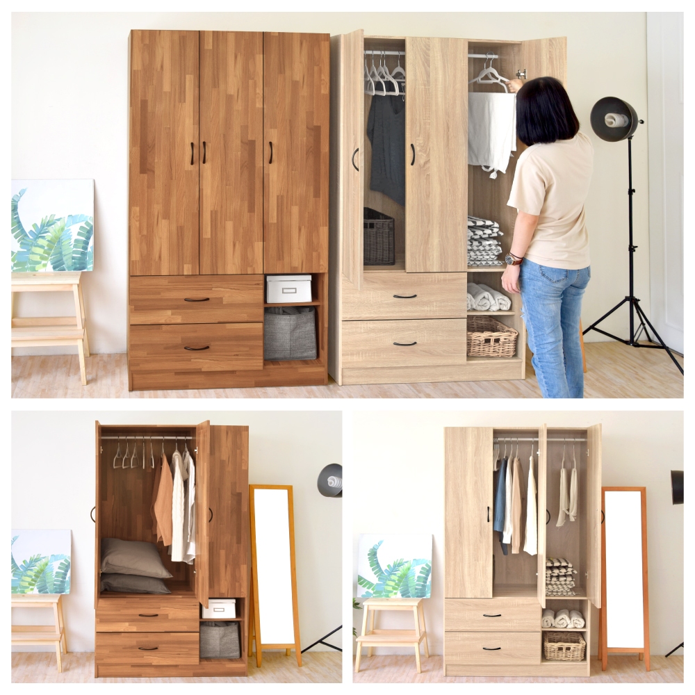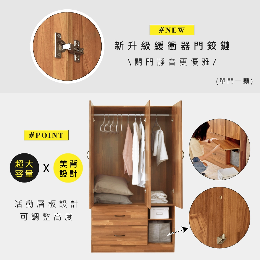 HOPMA美背復古緩衝三門二抽二格衣櫃 台灣製造 衣櫥 抽屜櫃 衣物收納櫃PC-A-NC890淺橡(漂流)木|拼版柚木WardrobesHOPMA 合馬家具