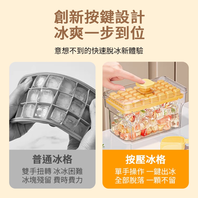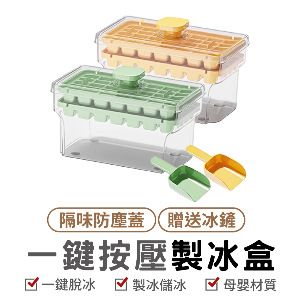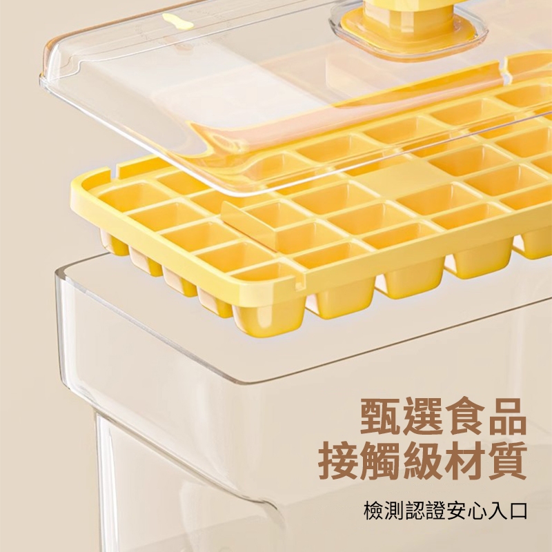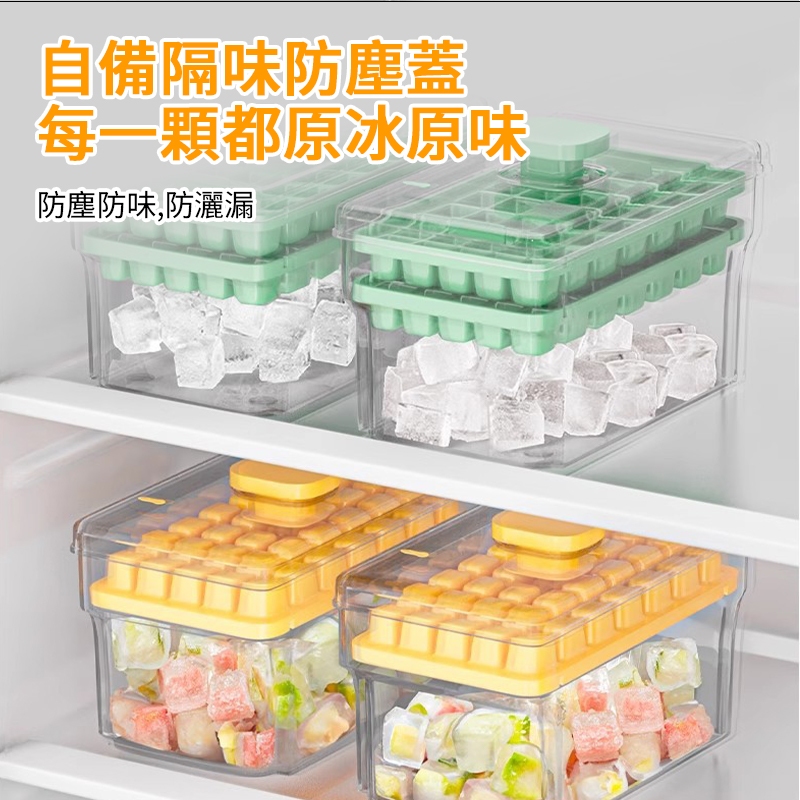 一鍵按壓製冰盒 按壓式冰塊盒 矽膠製冰盒 矽膠冰塊盒 製冰盒 帶蓋儲冰盒 冰塊模具 製冰 冰格 冰盒 儲冰盒 模具一鍵按壓製冰盒 綠色|一鍵按壓製冰盒 黃色Bakewares & DecorationsLarmi 樂米 台灣直營店