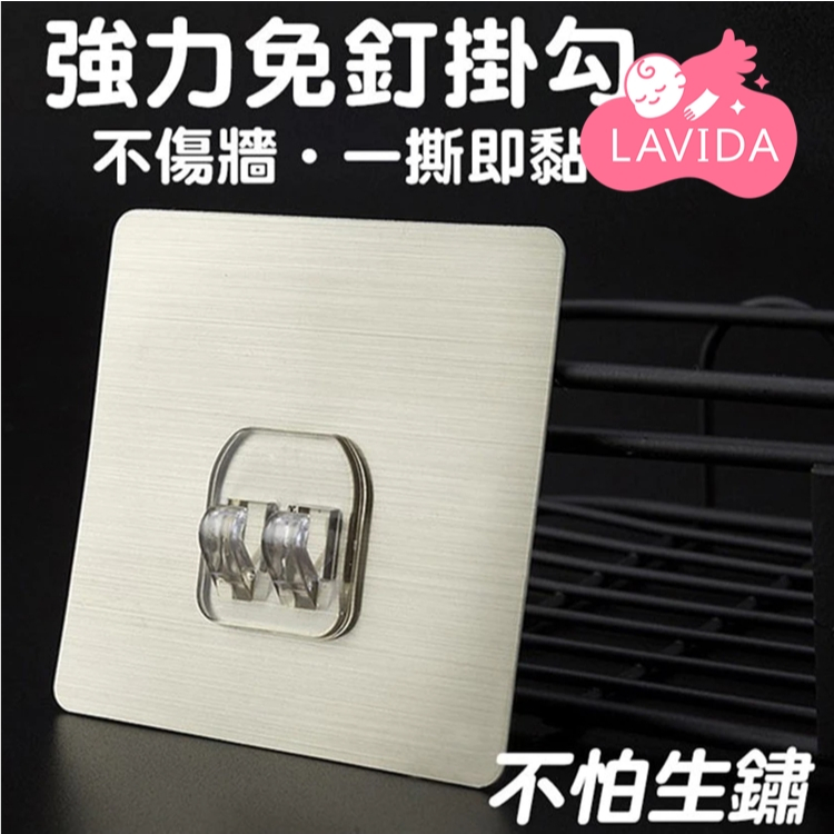 【LAVIDA嚴選】卡扣式置物架貼 免打孔 置物架掛勾 卡扣 卡扣貼 貼片 掛勾貼片 黏貼片 免釘方形單掛勾 (銀色/透明隨機)|XHooksLAVIDA 育兒好好玩!