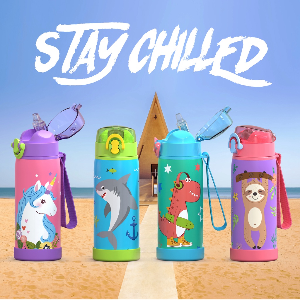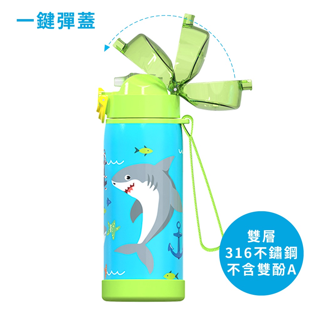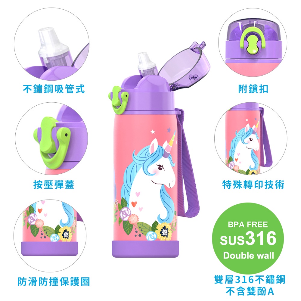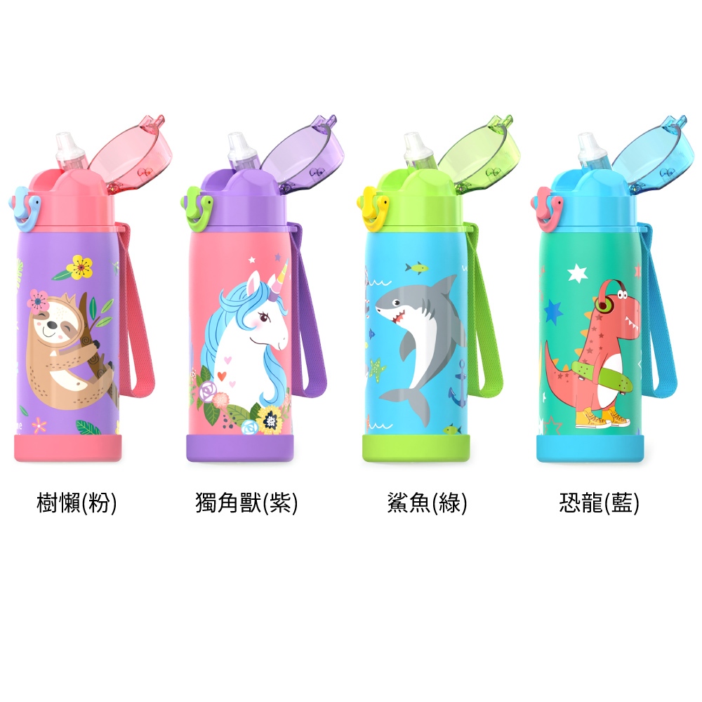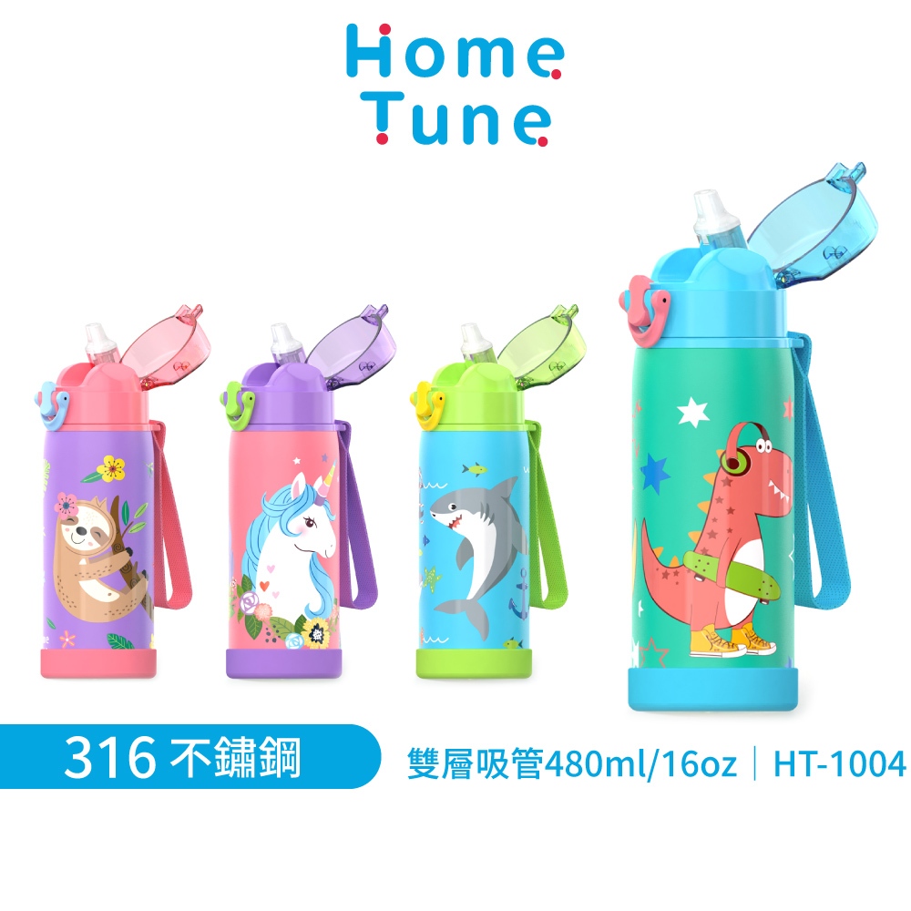 Home Tune家音 316不鏽鋼鎖扣彈蓋吸管式水壺480ml|雙層真空保溫瓶兒童保溫保冷水壺吸管水壺_HT-1004樹懶(粉)|獨角獸(紫)|恐龍(藍)|鯊魚(綠)Water Bottles & AccessoriesHome Tune家音