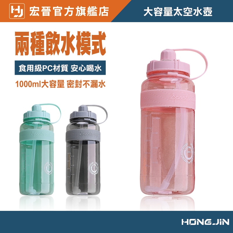 大容量太空水壺 運動水壺 水壺 1000mL 健身水壺 吸管水壺 消暑 旅行 隨身水壺 含專用吸管 兩種飲用模式卡哇依粉色-容量1000ml|📌Water Bottles & AccessoriesHONG JIN 宏晉 |3C資訊廣場