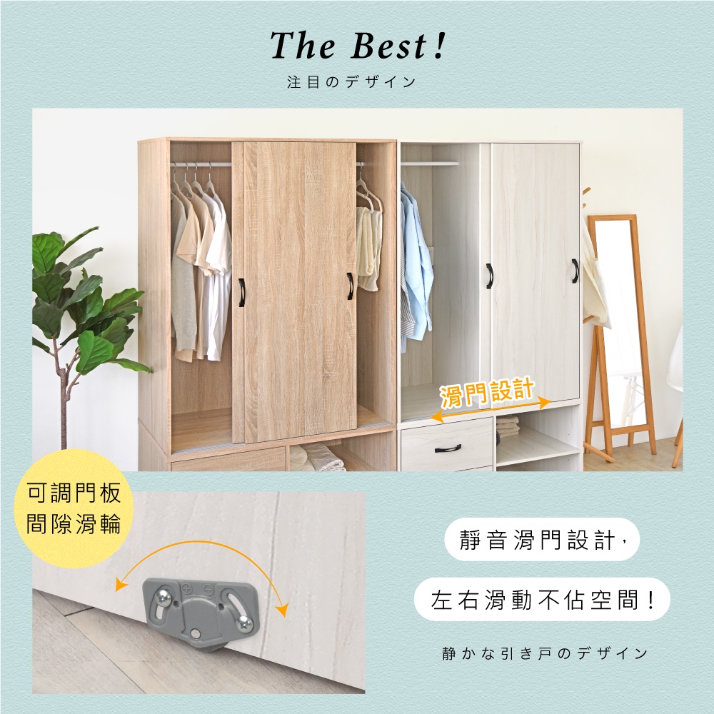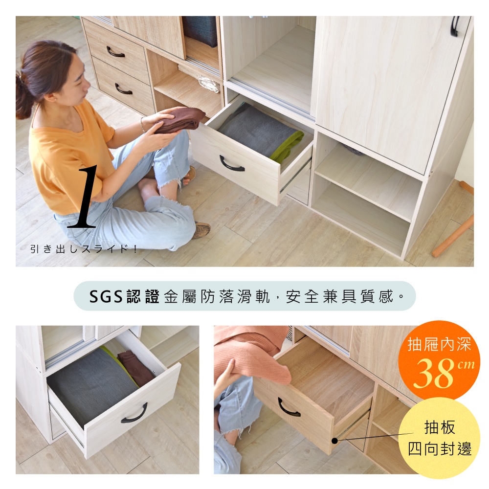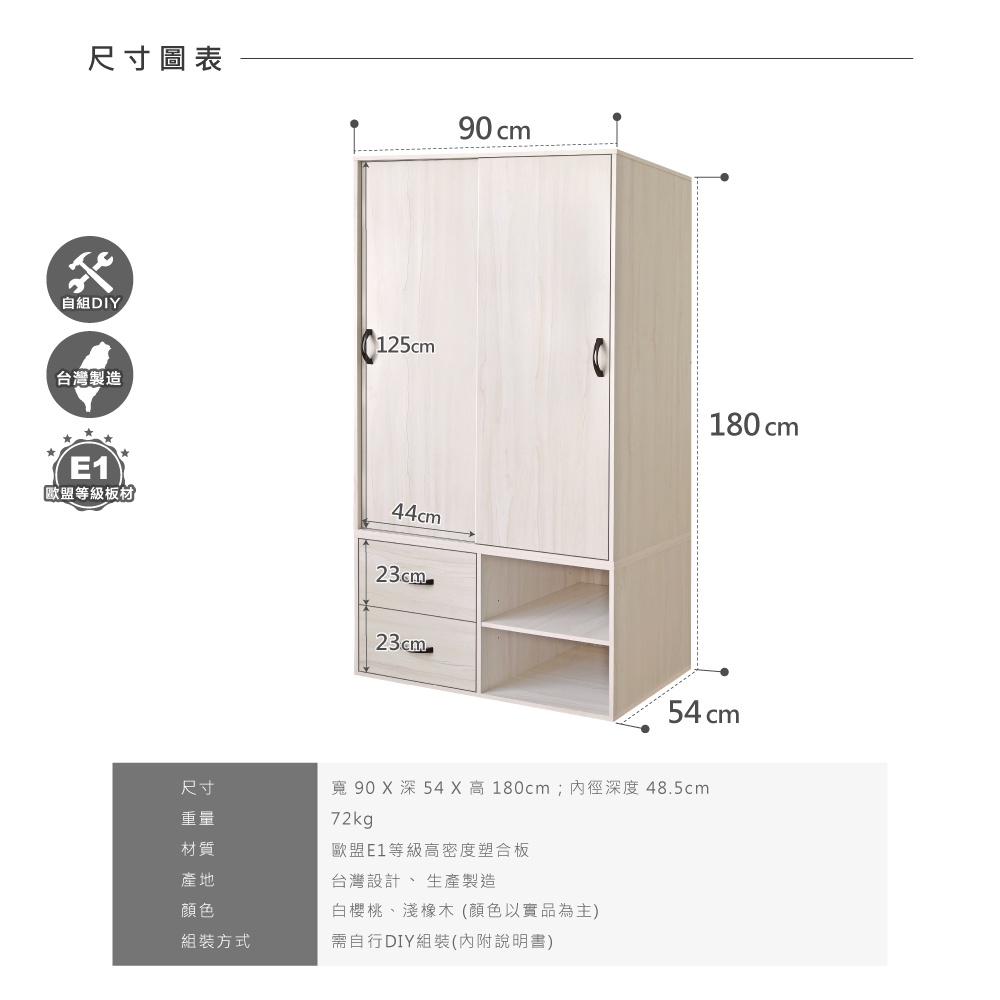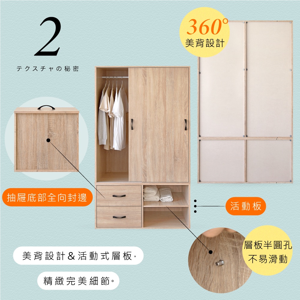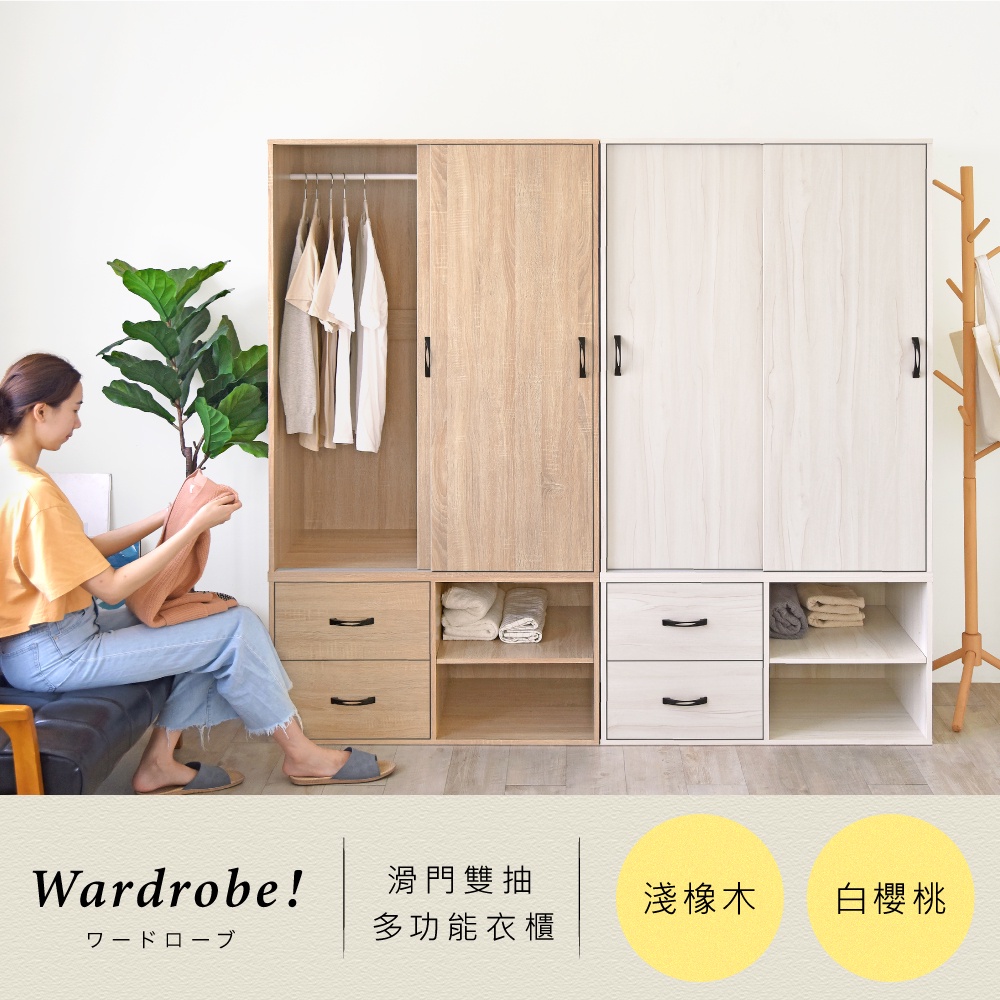 HOPMA美背滑門雙抽多功能衣櫃 台灣製造 衣櫥 抽屜櫃 衣物收納櫃A-NW1802淺橡(漂流)木|白櫻桃WardrobesHOPMA 合馬家具
