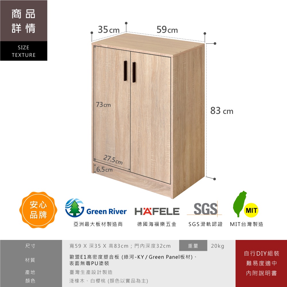 HOPMA美背二門四層收納櫃 台灣製造 儲藏收納 玄關櫃 置物書櫃G-2D590白櫻桃|淺橡(漂流)木Cupboards & CabinetsHOPMA 合馬家具