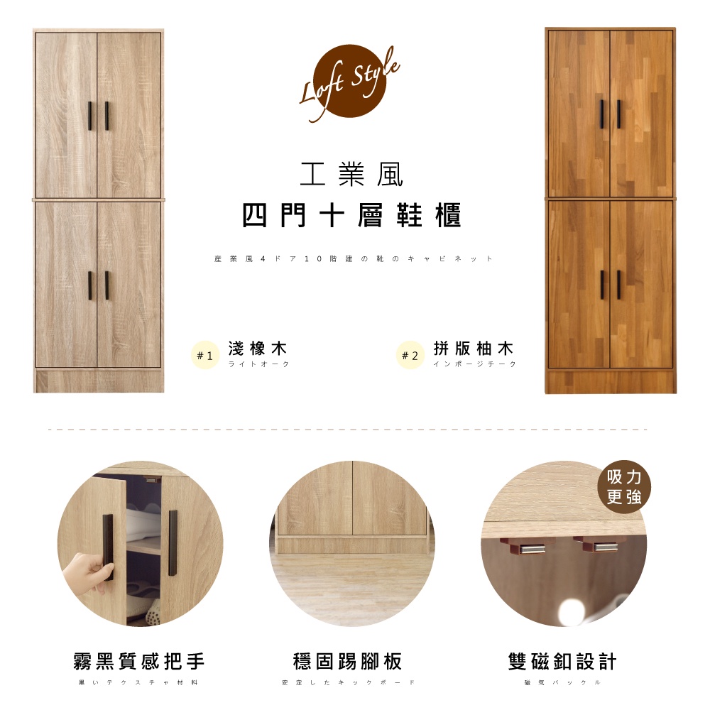 HOPMA工業風四門十層鞋櫃 台灣製造 玄關櫃 收納櫃 邊櫃 鞋架C-1534淺橡(漂流)木|拼版柚木Cupboards & CabinetsHOPMA 合馬家具