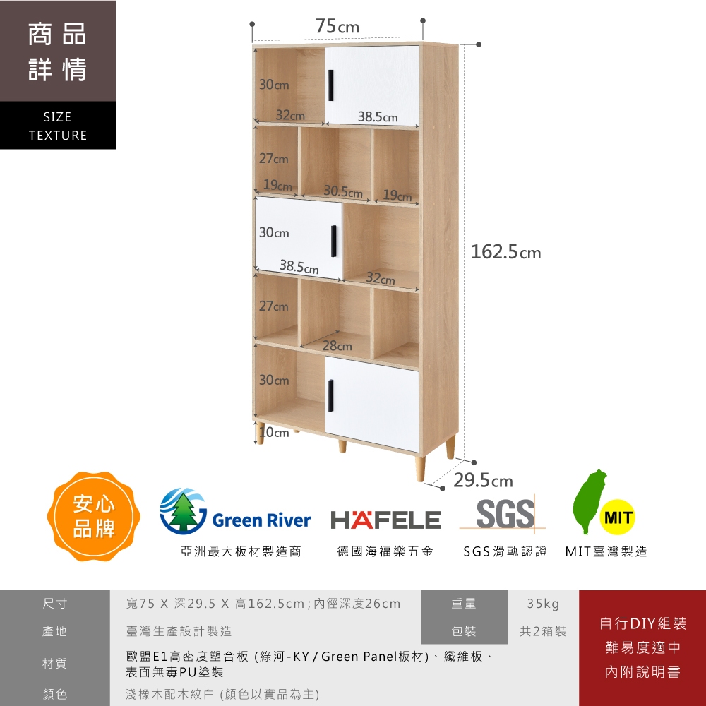 HOPMA造型三門五層收納書櫃 台灣製造 儲藏層櫃 玄關置物櫃G-S4759淺橡(漂流)木配木紋白Cupboards & CabinetsHOPMA 合馬家具