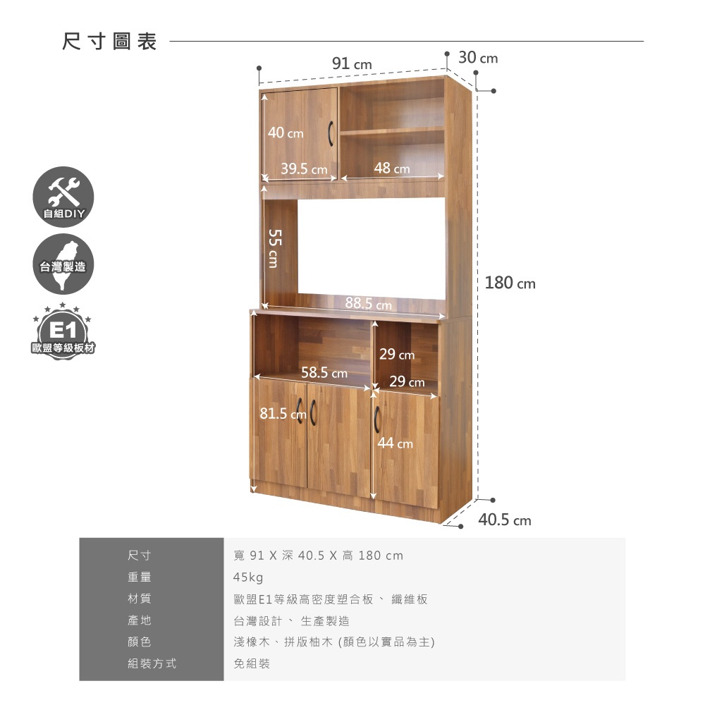 HOPMA 免組裝-美背歐森高廚房收納櫃-專人組裝 電器櫥櫃 收納置物PC-D-1800-A淺橡(漂流)木-專人組裝|拼版柚木-專人組裝Cupboards & CabinetsHOPMA 合馬家具