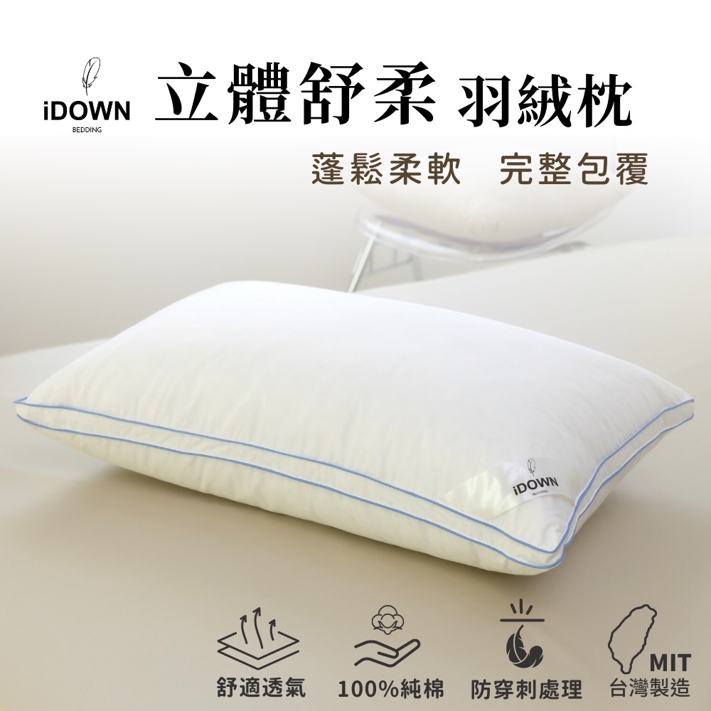 【 iDOWN 】70 / 30 羽絨超柔比例| 立體舒柔羽絨枕(1入)|五星飯店羽絨枕 (睡感蓬鬆柔軟、完整包覆)1.4 kg 中低枕|1.2 kg 低軟枕PillowsiDOWN BEDDING 愛羽絨