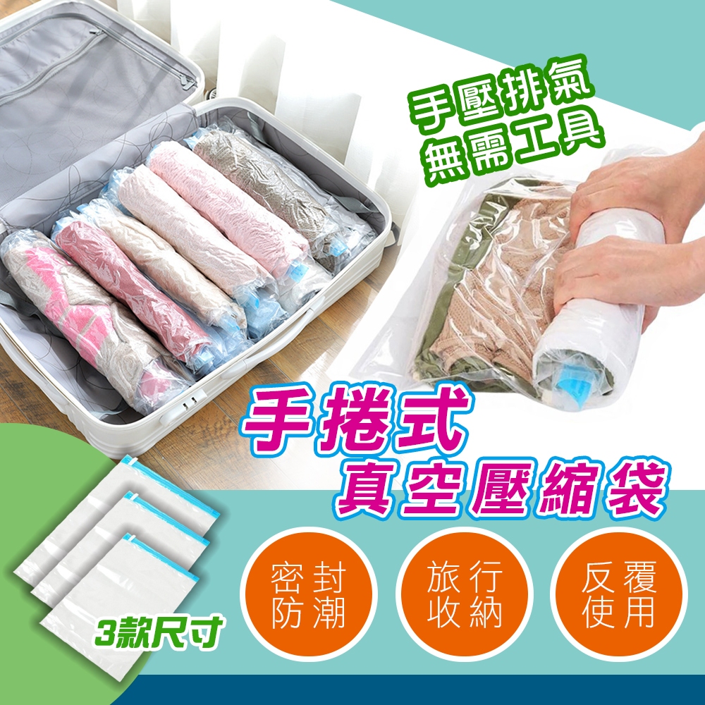 手卷真空收納袋 旅行袋 壓縮袋 收納 衣服 襪子 手捲收納袋 真空 真空袋35*50cm x1|40*60cm x1|50*70cm x1Wardrobe Organizersi-gota官方旗艦館|昶興電子