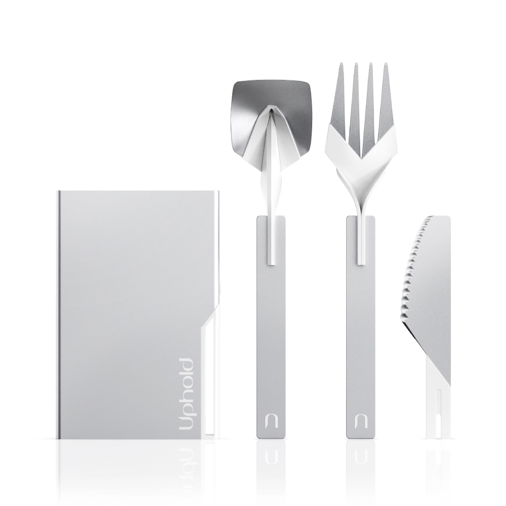 Uphold 名片型口袋環保鈦合金餐具組 摺紙技術組裝太空灰|玫瑰紅|質感銀CutleriesIBOOMING時尚精品配件