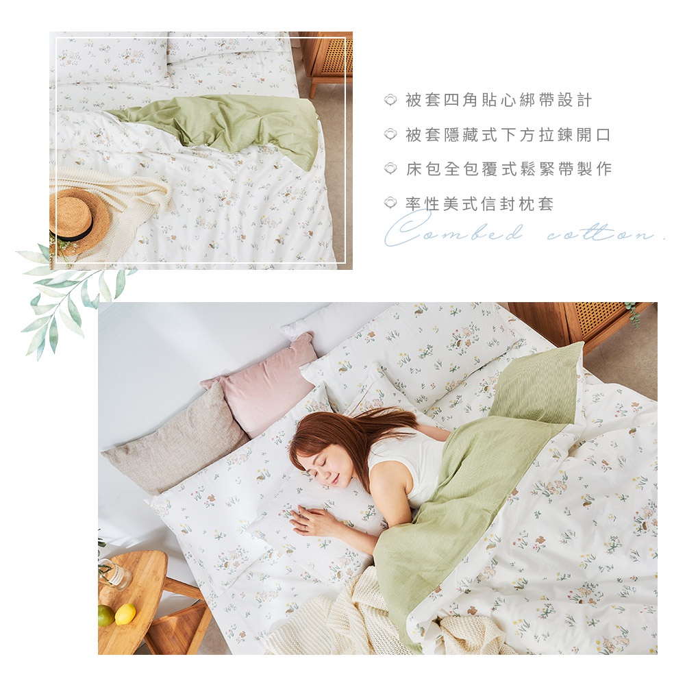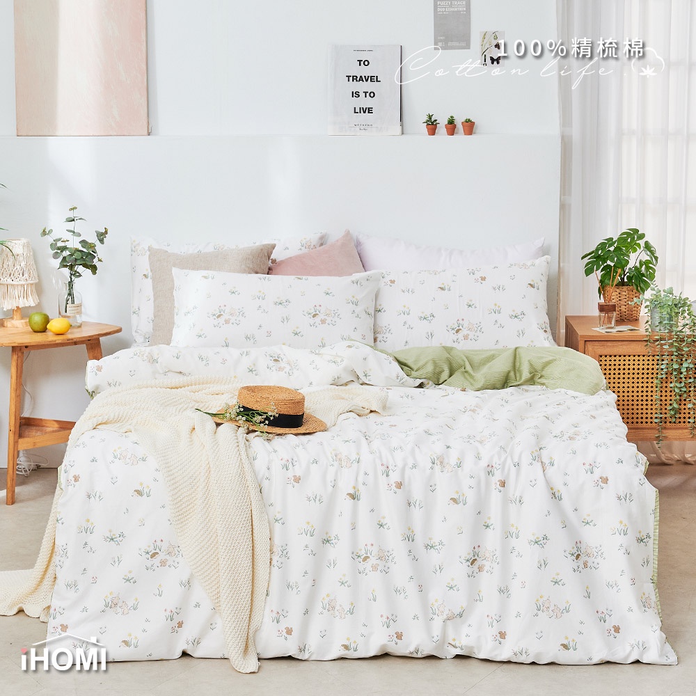 【iHOMI 愛好眠】40支精梳棉 單人/雙人/加大 床包被套/鋪棉兩用被組 / 小森故事 台灣製