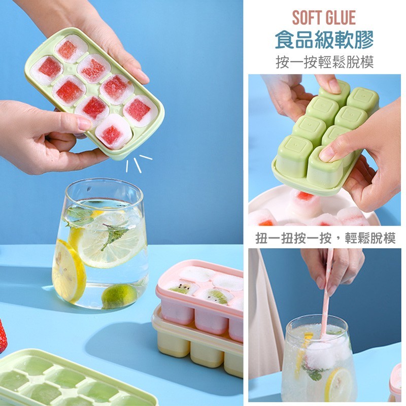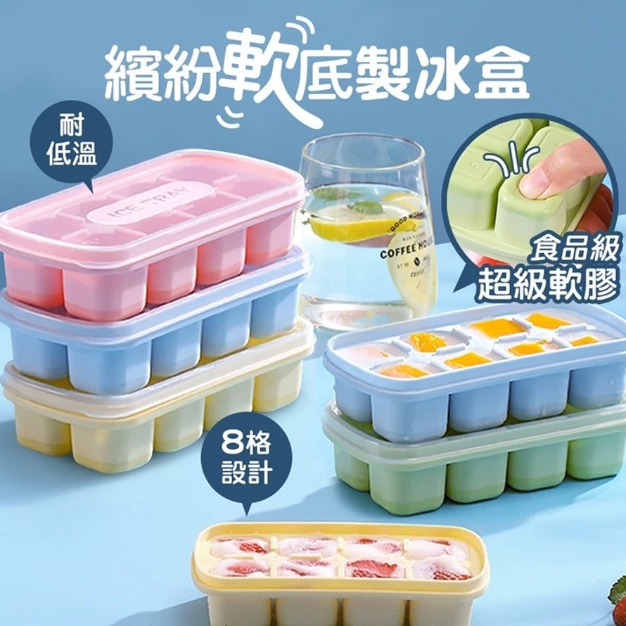 【LAVIDA嚴選】繽紛軟底製冰盒 帶蓋製冰盒 按壓式製冰盒 製冰模具 矽膠製冰格 冰塊盒 家用製冰 製冰盒蜜桃粉|萊姆黃|薄荷綠|冰雪藍OthersLAVIDA 育兒好好玩!