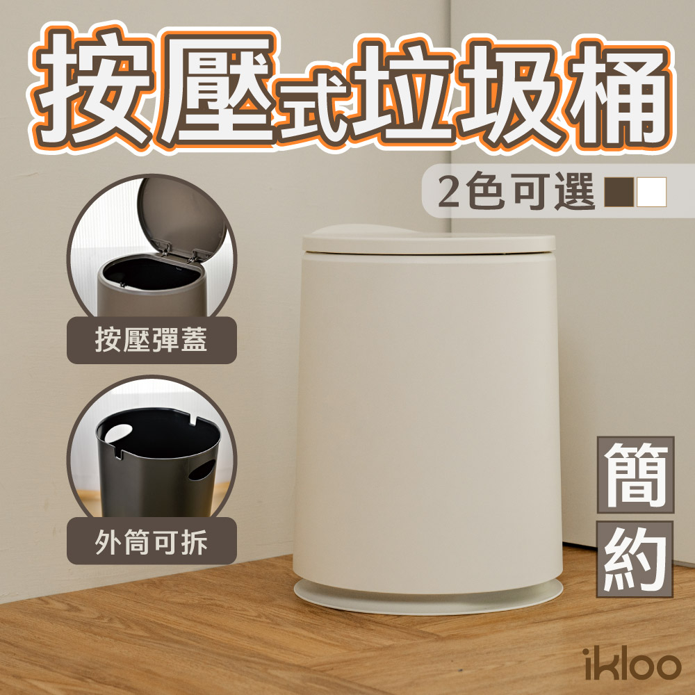 【ikloo】簡約按壓式垃圾桶 塑膠桶 收納置物桶 兩色可選白色|咖色Trash & Recycling Binsikloo 宜酷屋
