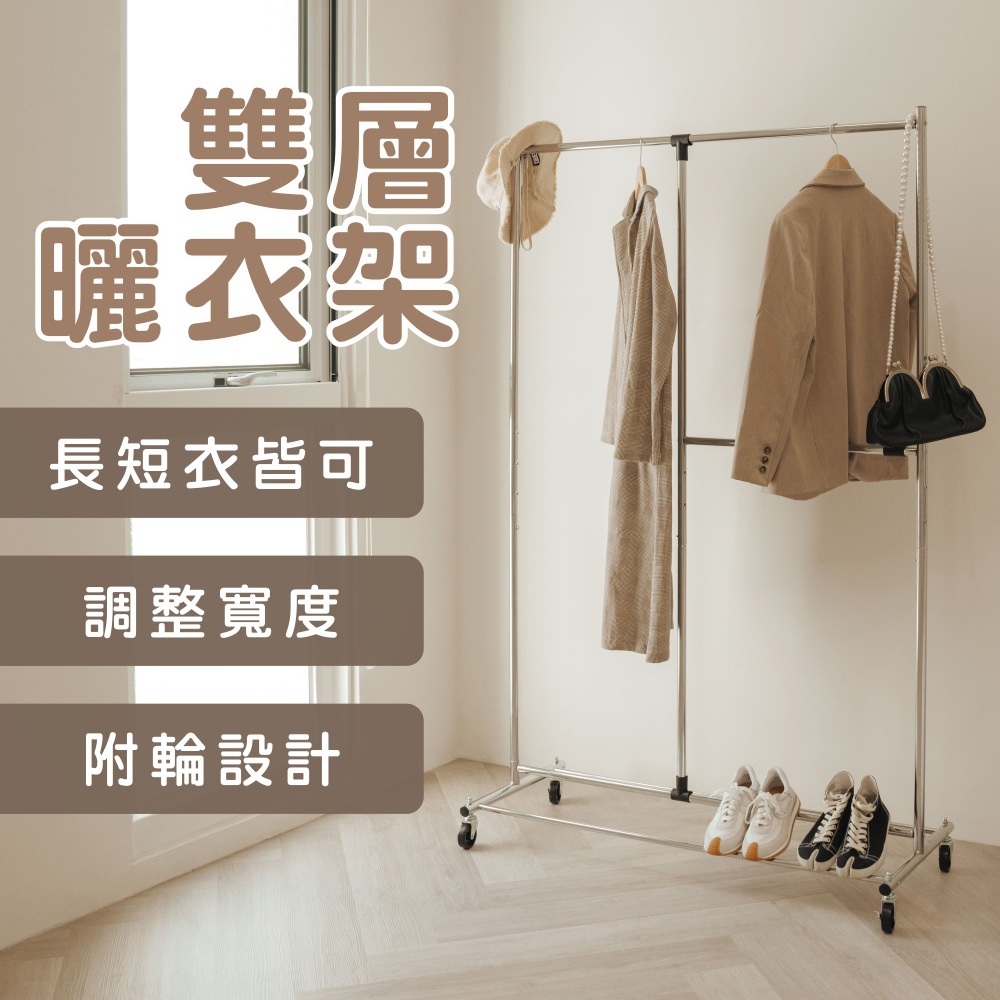 【ikloo】可移動多功能雙層曬衣架 (晾衣架 曬衣桿 掛衣架 附輪)【ikloo】可移動多功能雙層曬衣架 (晾衣架 曬衣桿 掛衣架 附輪)Clotheslines & Drying Racksikloo 宜酷屋