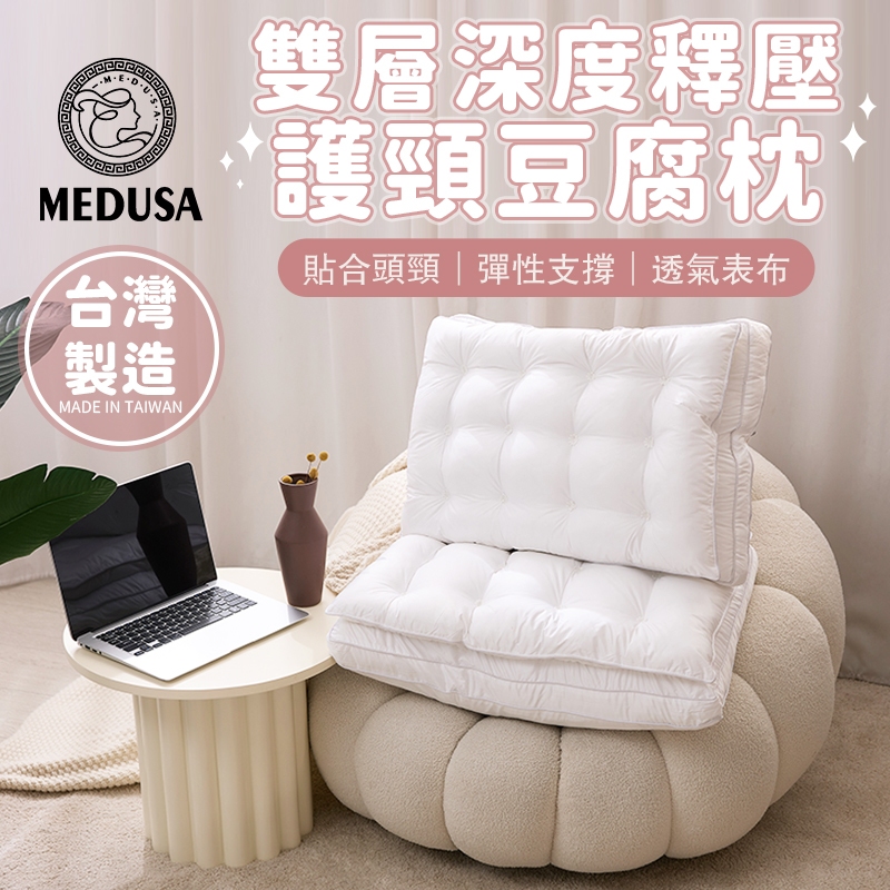 【MEDUSA美杜莎】台灣製造 貼合頸椎 雙層結構 護頸豆腐枕 深度釋壓 豆腐枕 枕頭 枕芯雙層釋壓護頸豆腐枕PillowsMEDUSA美杜莎寢具【官方旗艦店】