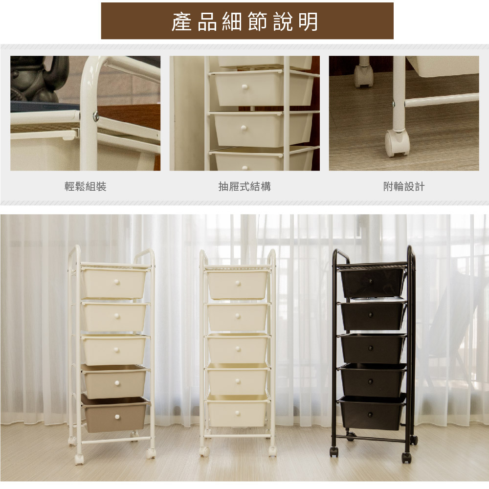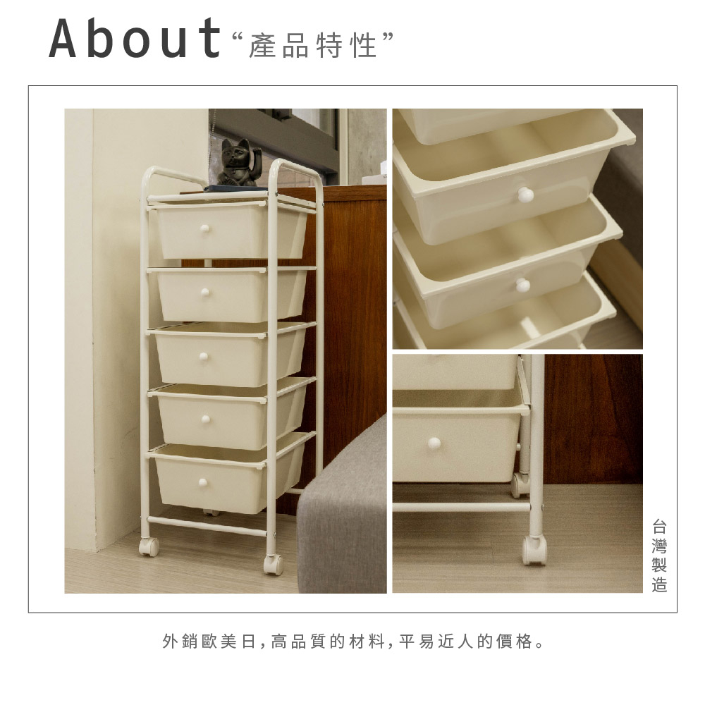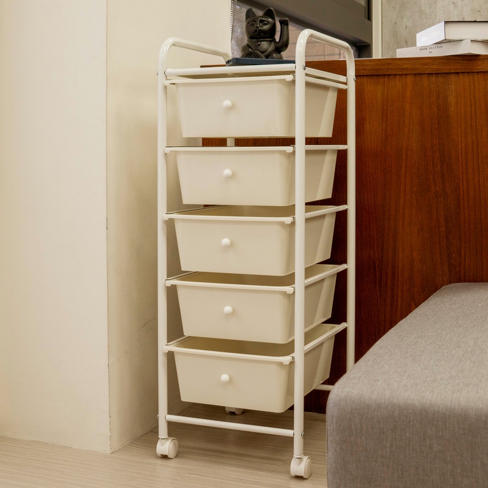 【ikloo】無印風五層收納抽屜車純白Trolliesikloo 宜酷屋