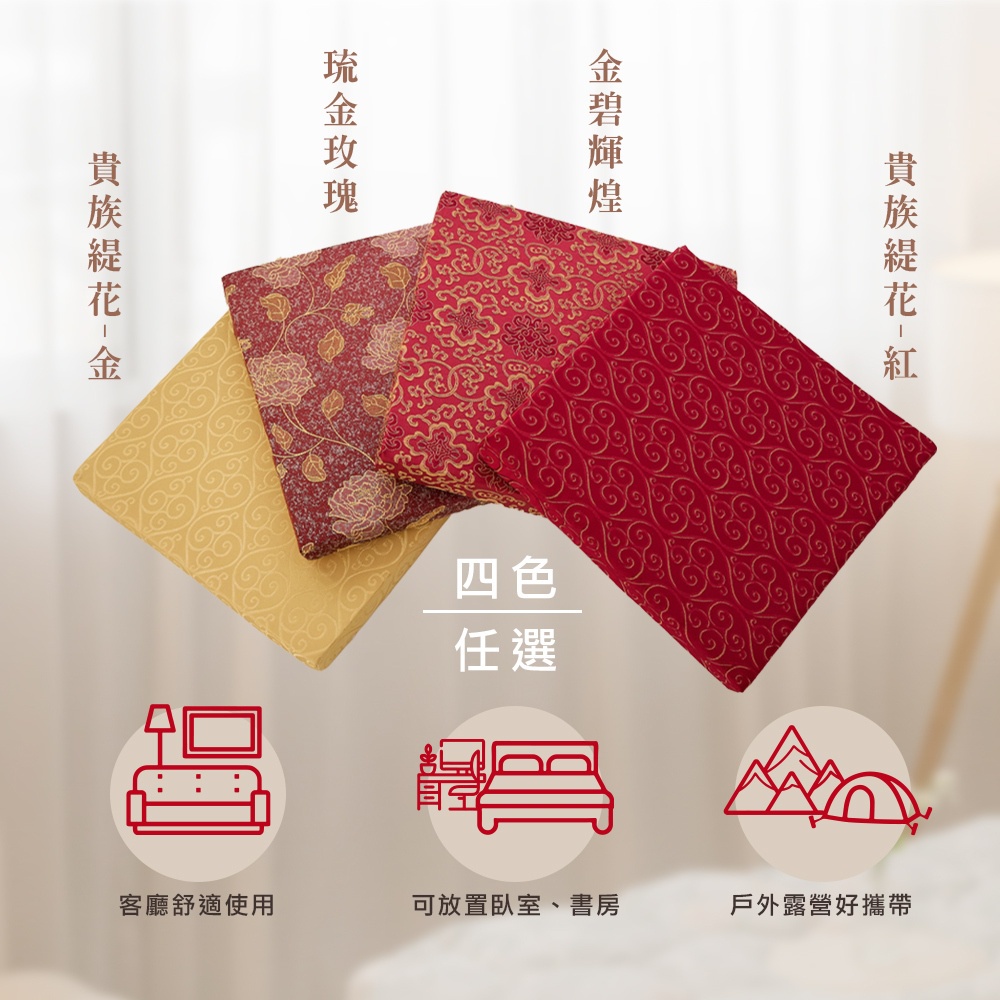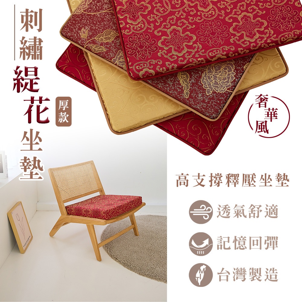【金大器】奢華宮廷刺繡緹花大型坐墊-特厚5cm50*50cm 木椅專用靠墊 和室坐墊 方形坐墊 太空坐墊 坐不扁椅墊貴族緹花-金|貴族緹花-紅|金碧輝煌|琉金玫瑰CushionsJINDACHI金大器精品寢具-官方旗艦|天絲/床包/棉被/枕頭/床墊/椅靠墊