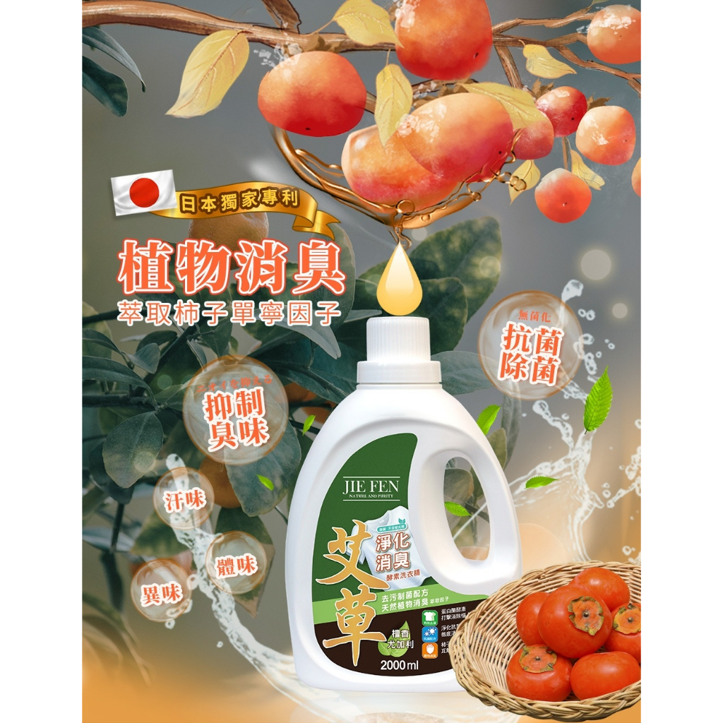 【Jie Fen潔芬】艾草酵素洗衣精 2000ml|消臭抗菌・草本香氛・深層潔淨・室內晾衣1瓶【超商上限2組】|2瓶【超商上限1組】Laundry CareJie Fen潔芬官方旗艦店
