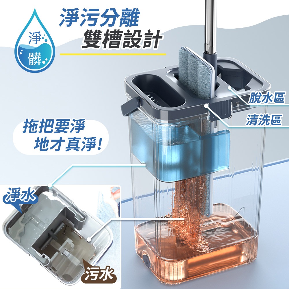 JOJOGO 污利海 升級版髒淨分小神拖 平板拖把 淨汙分離拖把 汙水分離拖把 旋轉拖把 懶人拖把 淨污分離 直立拖把升級小神拖(桶+桿+魔絲布2+纖維布2)|魔絲拖把布、纖維拖把布,請至另一賣場購買MopsJOJOGO 生活百貨